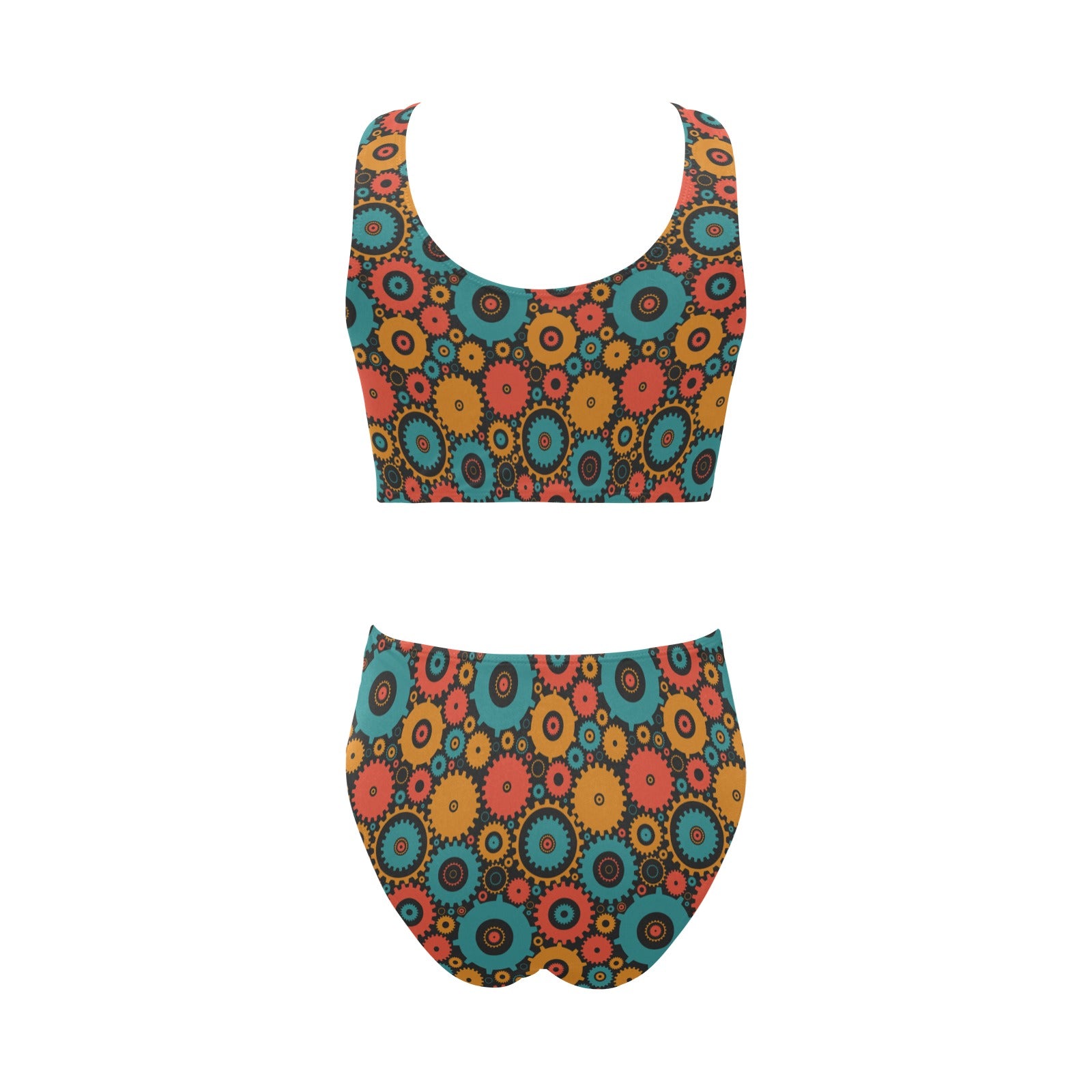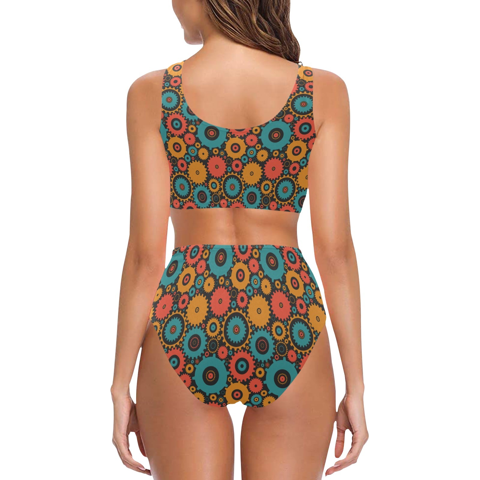 Gear Pattern Print Design 01 Chest Bowknot High Waisted Bikini Swimsuit
