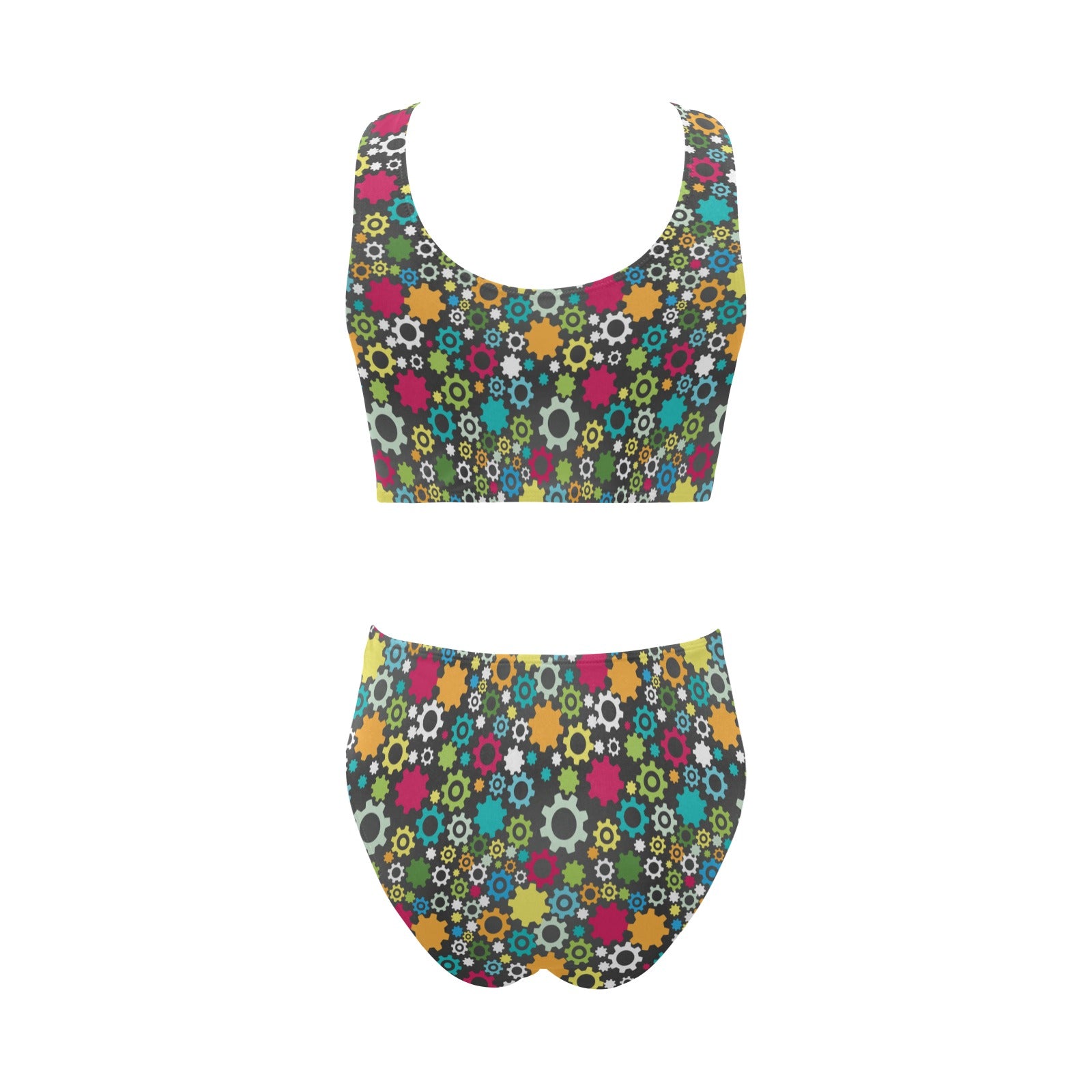Gear Pattern Print Design 03 Chest Bowknot High Waisted Bikini Swimsuit