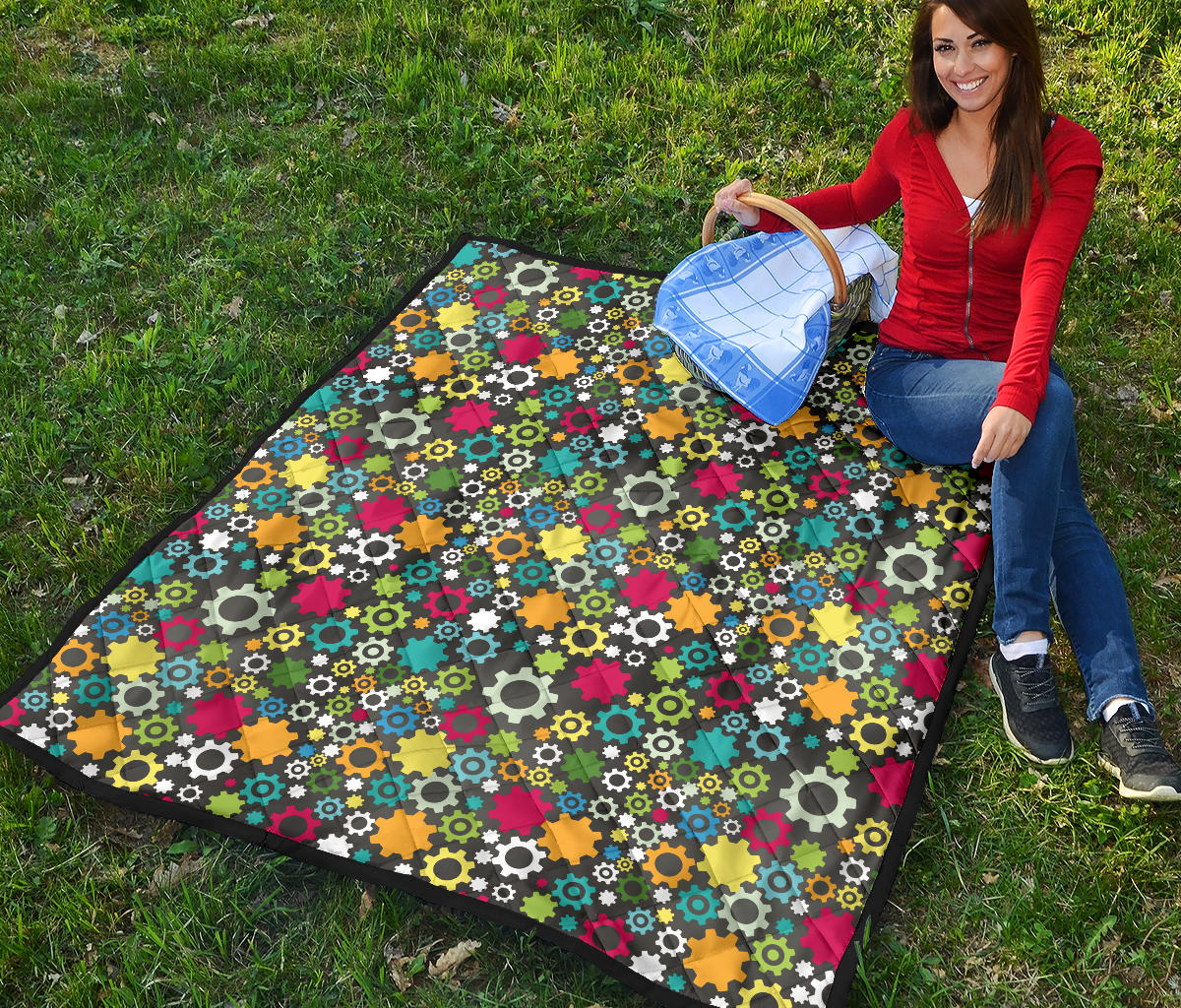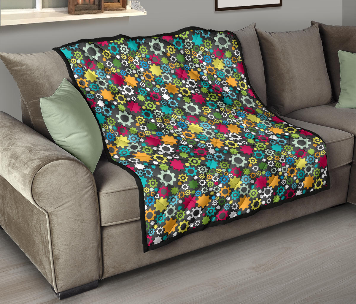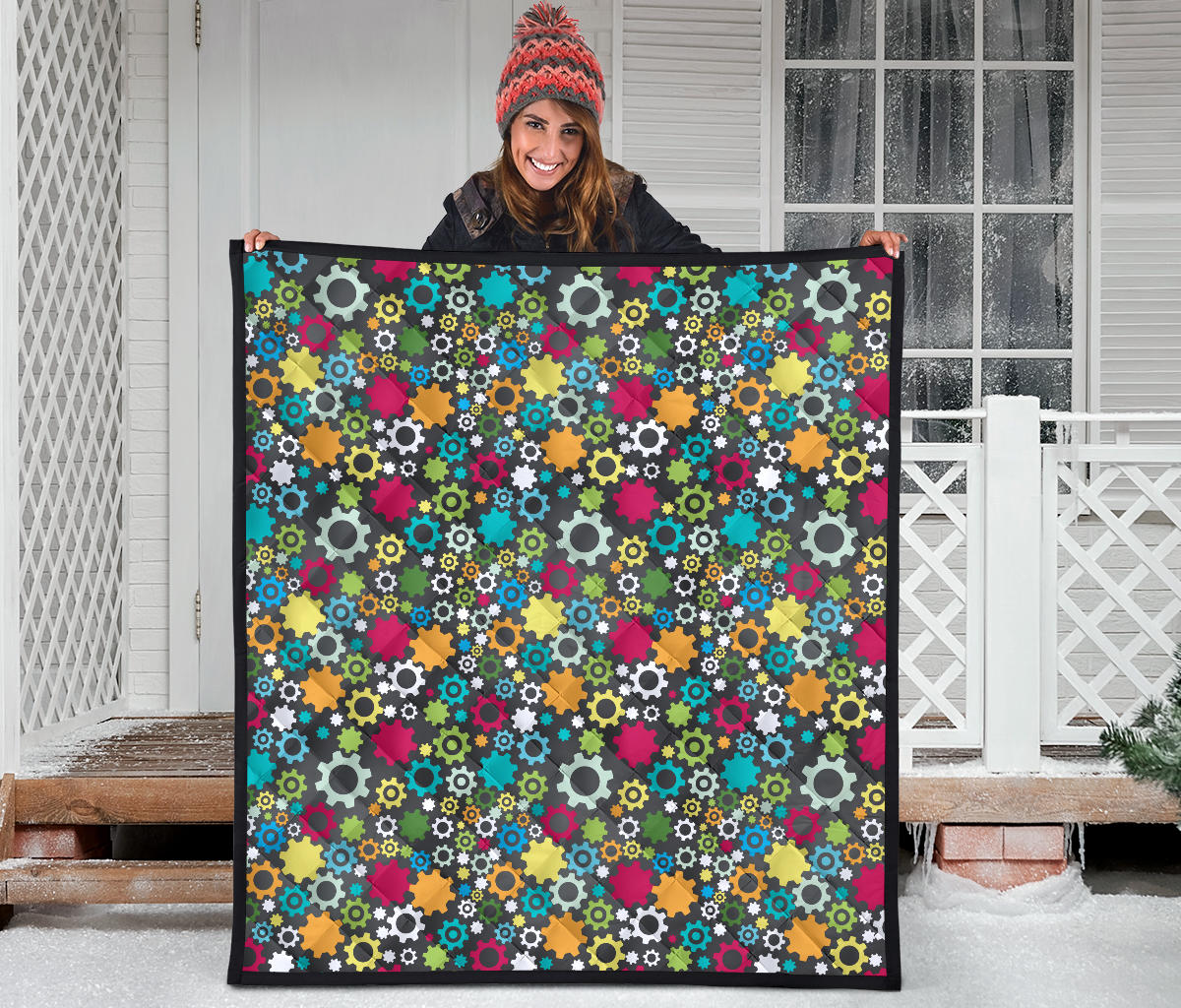 Gear Pattern Print Design 03 Premium Quilt is a uniqued design and limited item. It made to order, hand printed, and sewn with love in our factory.