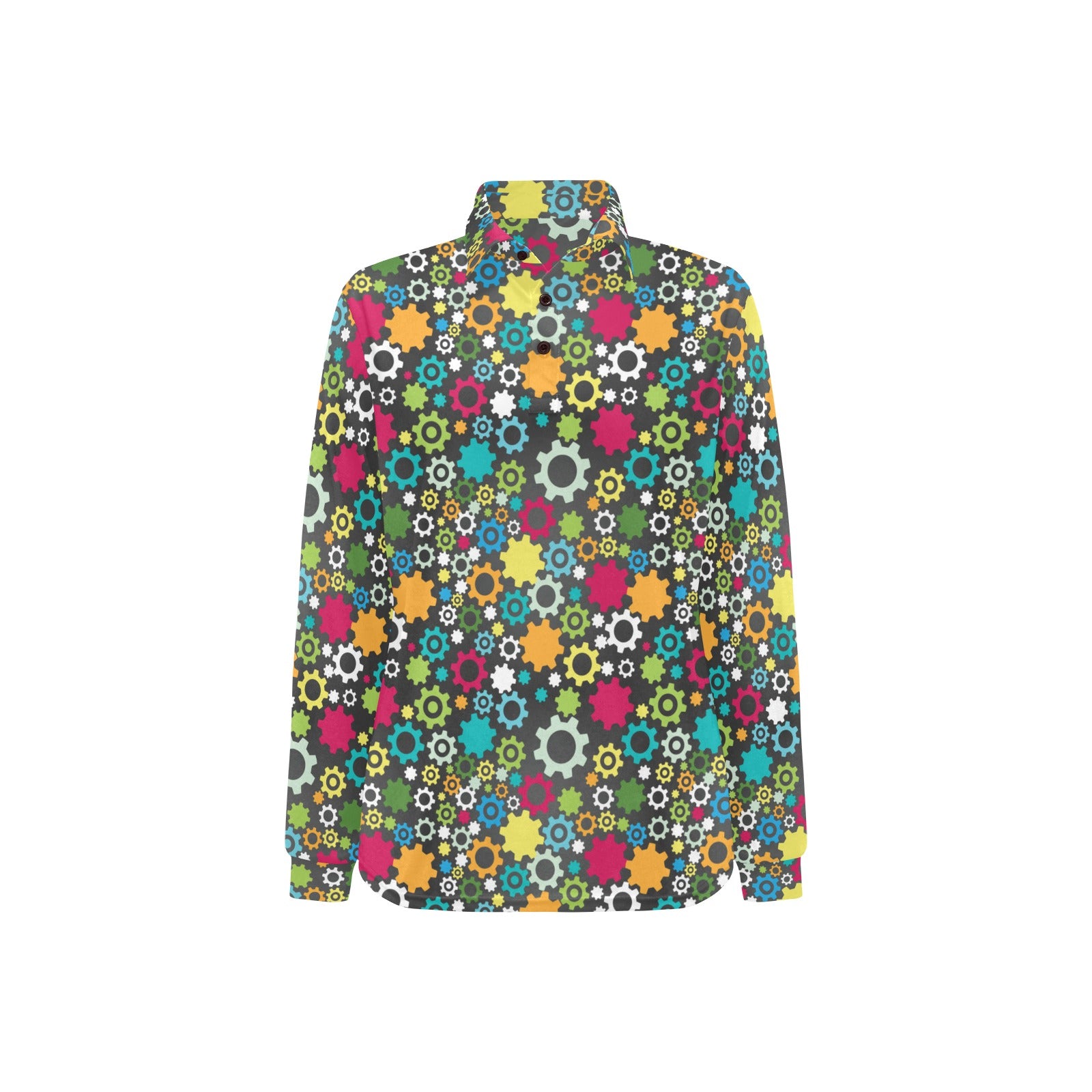 Gear Pattern Print Design 03 Women's Long Sleeve Polo Shirt