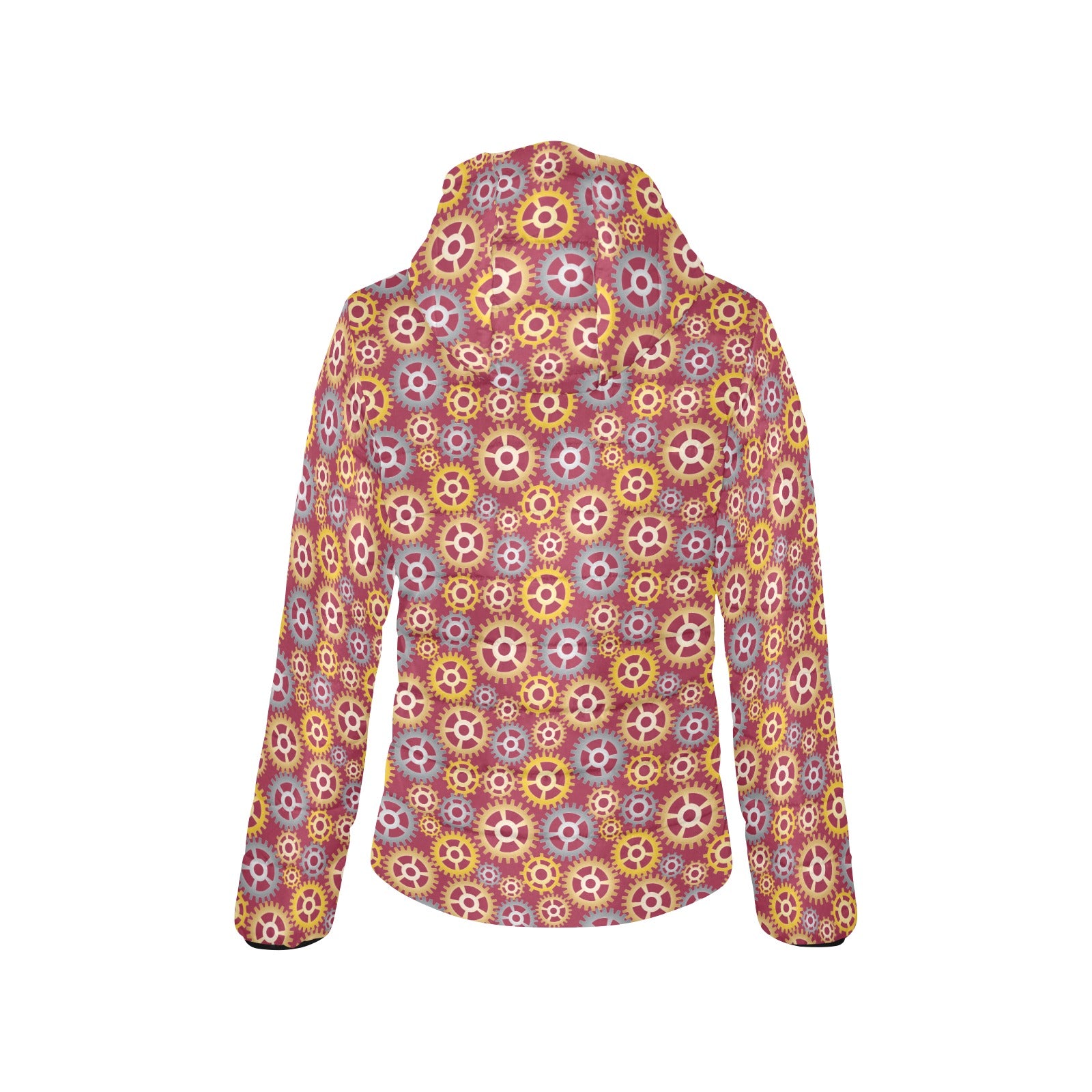 Gear Pattern Print Design 04 Women's Padded Hooded Jacket