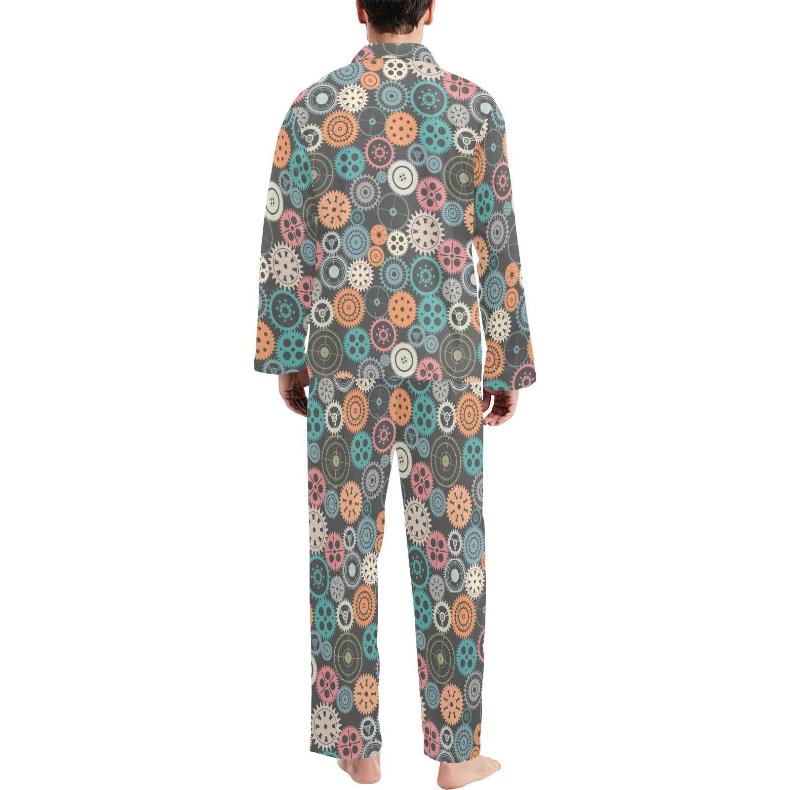 Gear Pattern Print Design 05 Men's Long Pajama Set