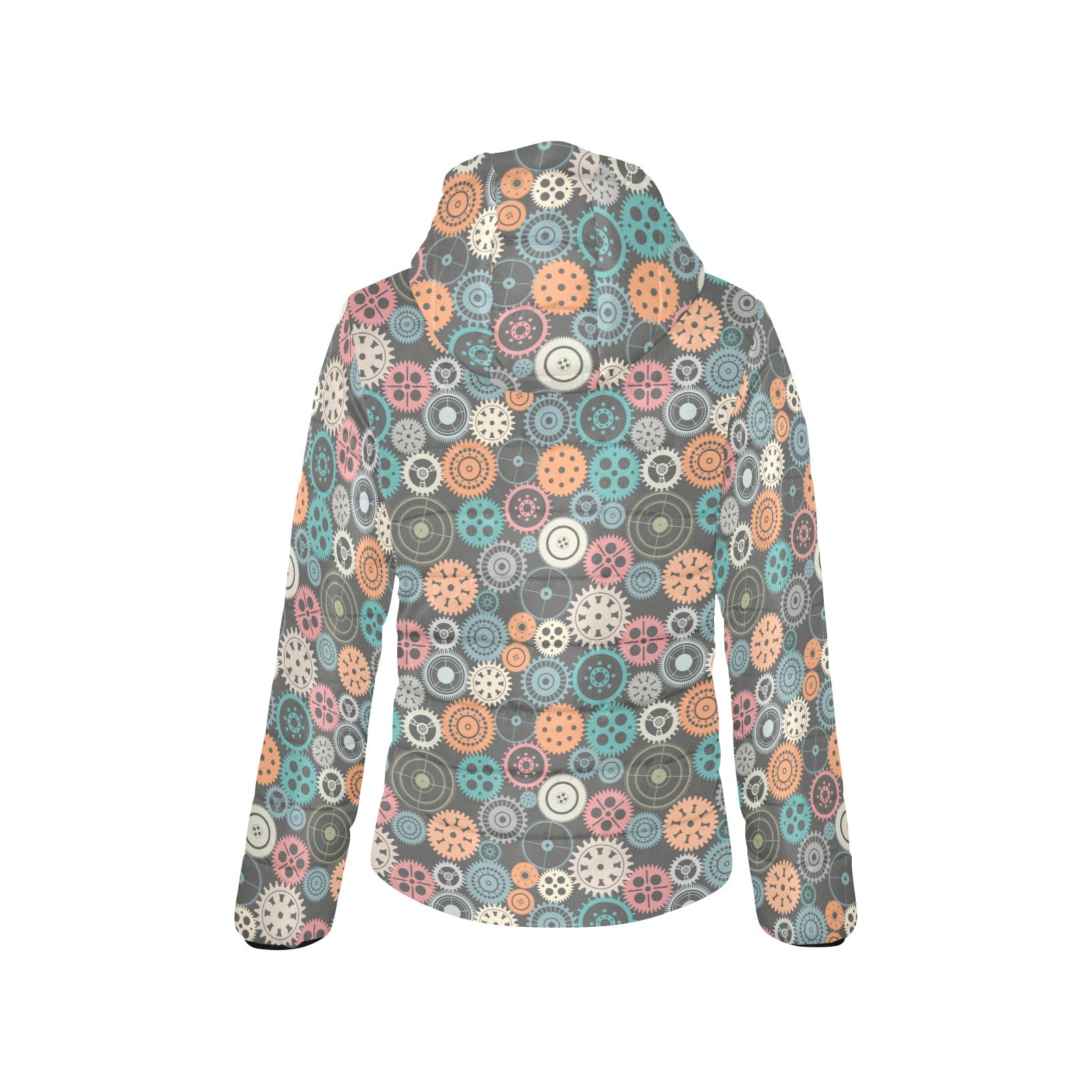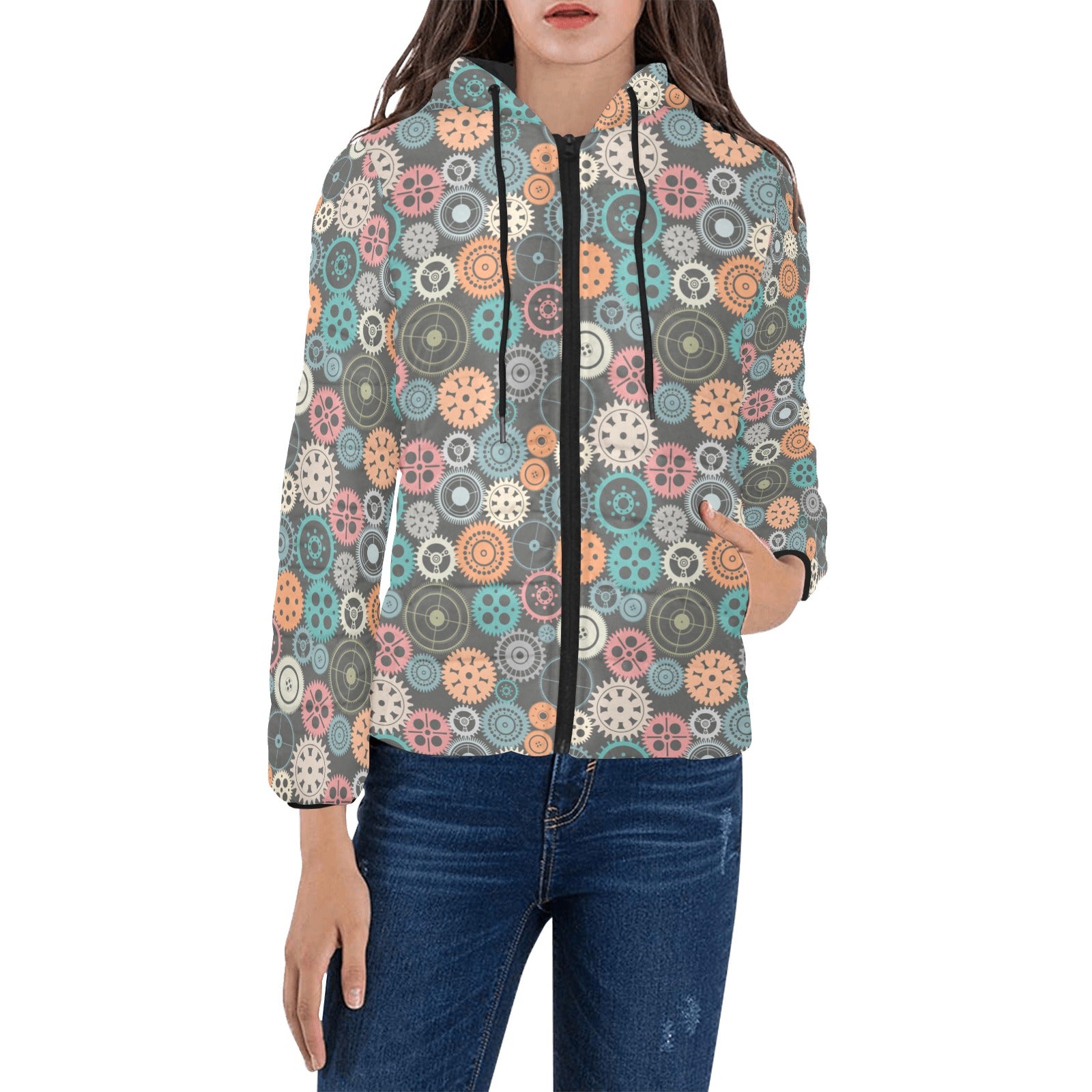 Gear Pattern Print Design 05 Women's Padded Hooded Jacket