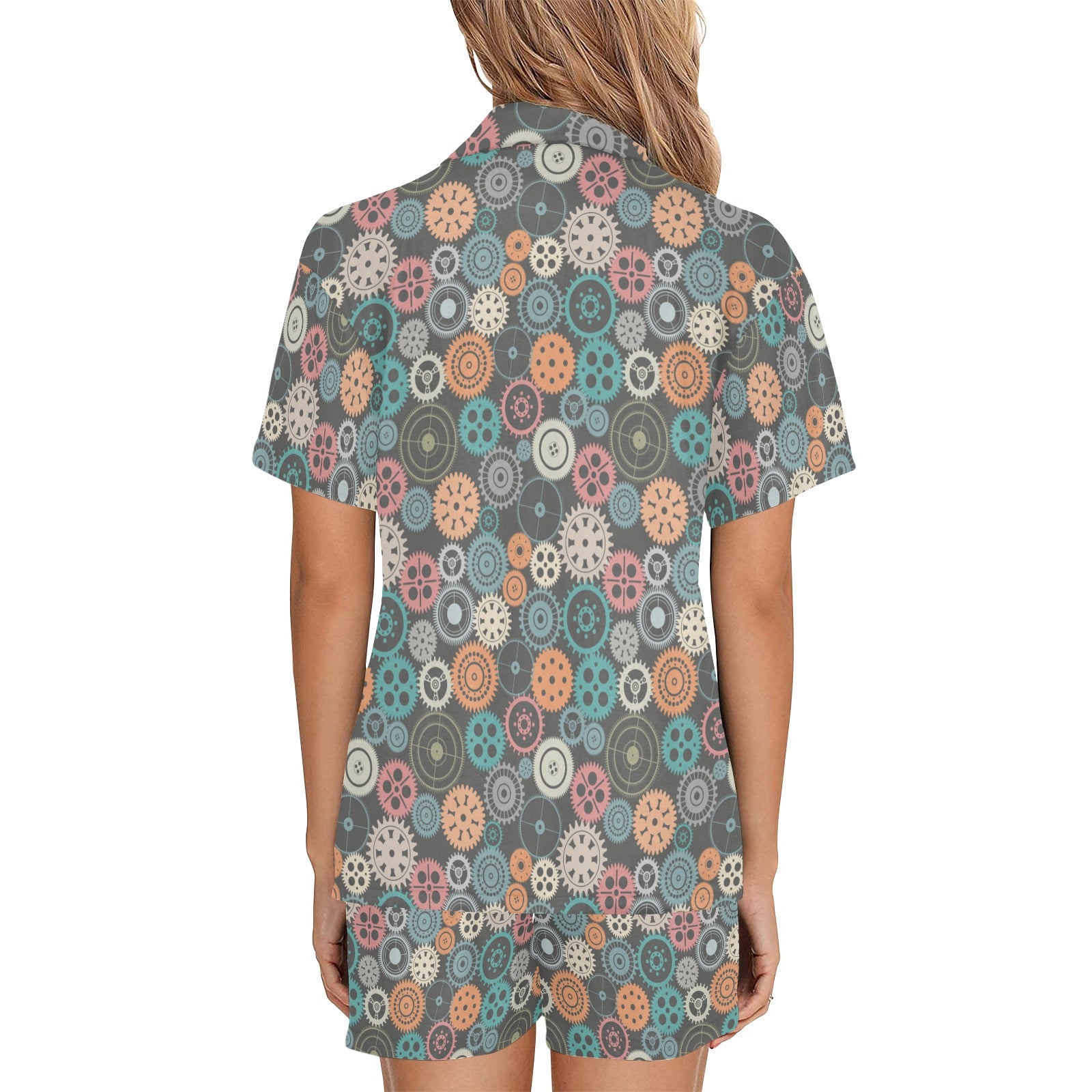 Gear Pattern Print Design 05 Women's V-Neck Short Pajama Set