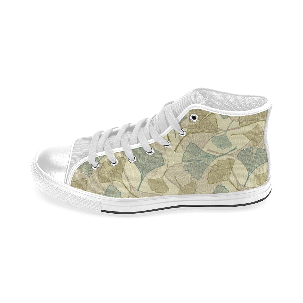 Ginkgo leaves design pattern Men's High Top Canvas Shoes White