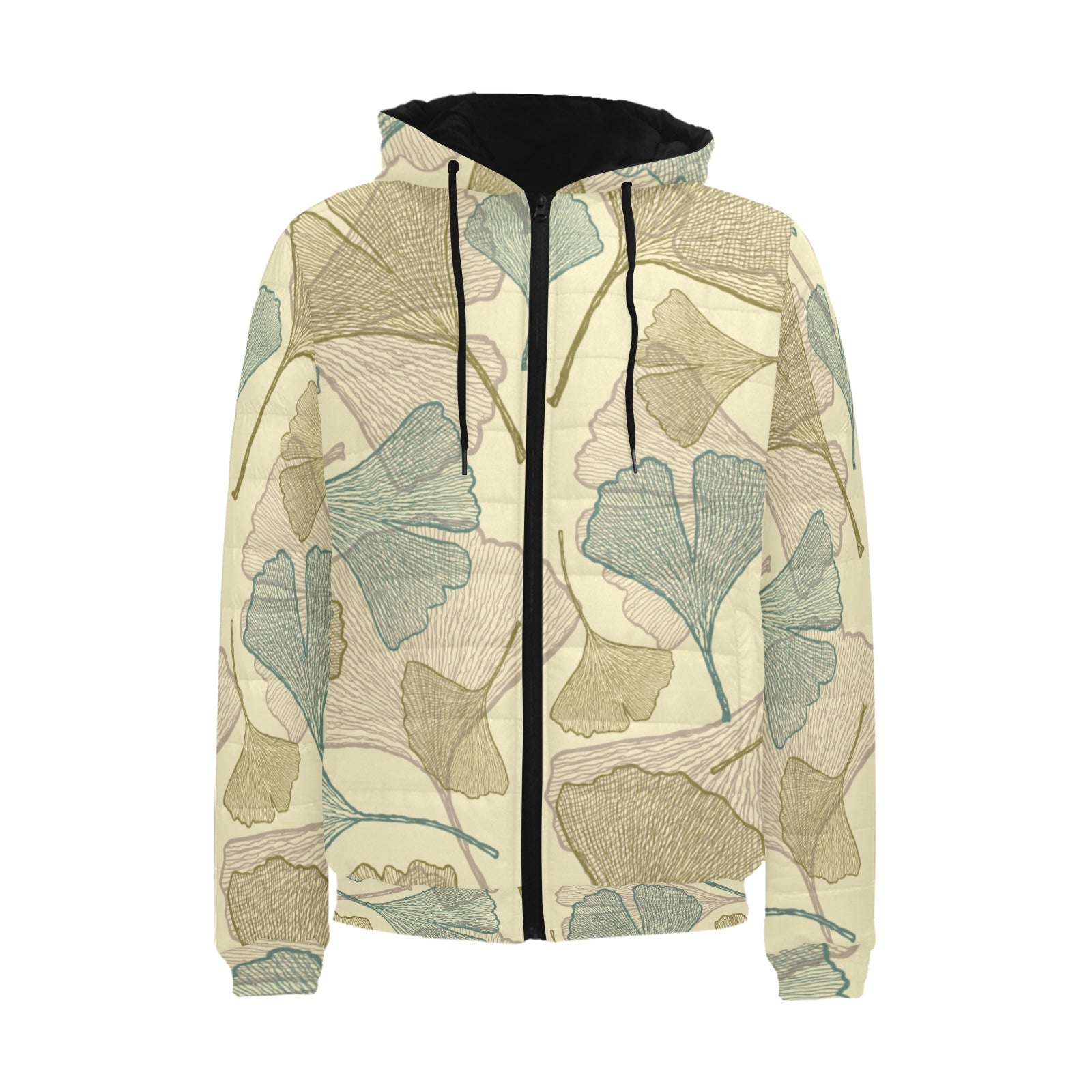 Ginkgo leaves design pattern Men's Padded Hooded Jacket