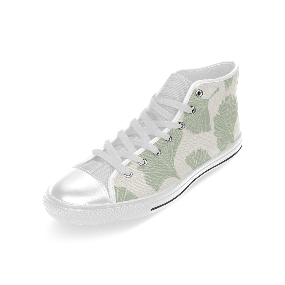 Ginkgo leaves pattern Men's High Top Canvas Shoes White