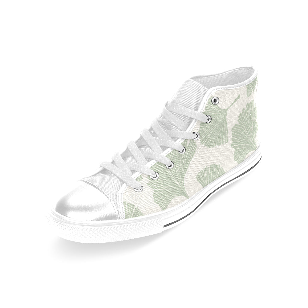 Ginkgo leaves pattern Women's High Top Canvas Shoes White