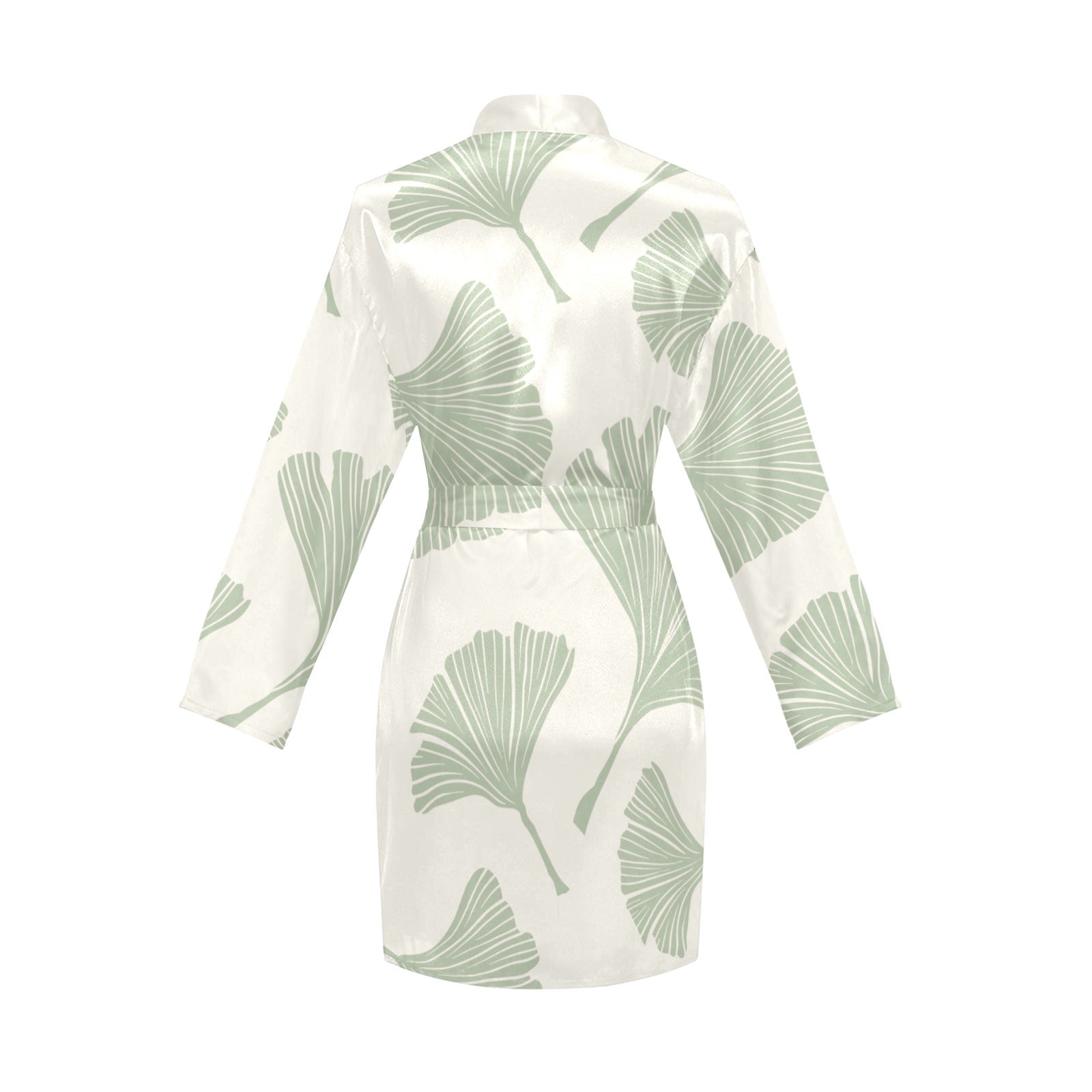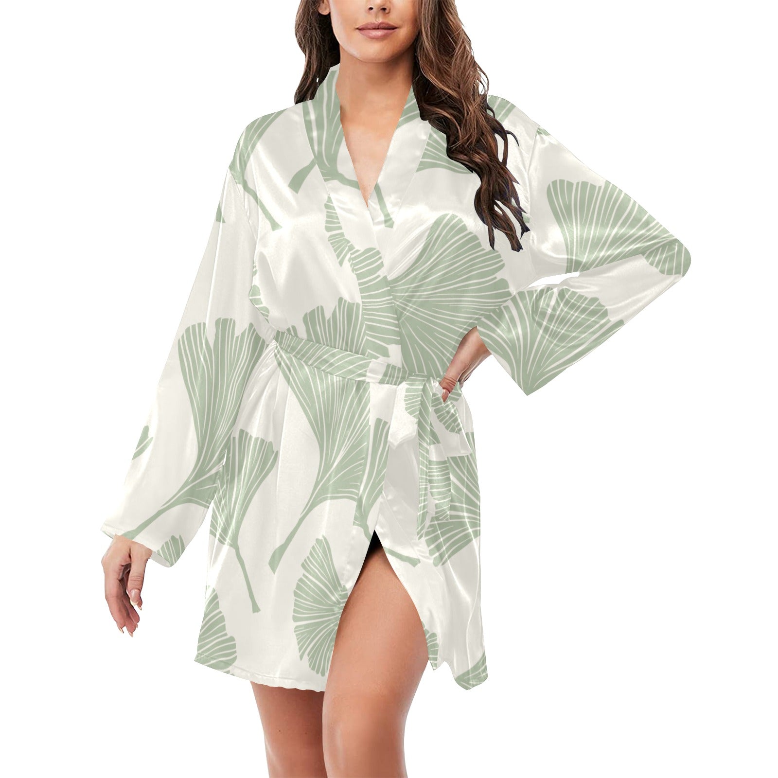 Ginkgo leaves pattern Women's Long Sleeve Belted Night Robe