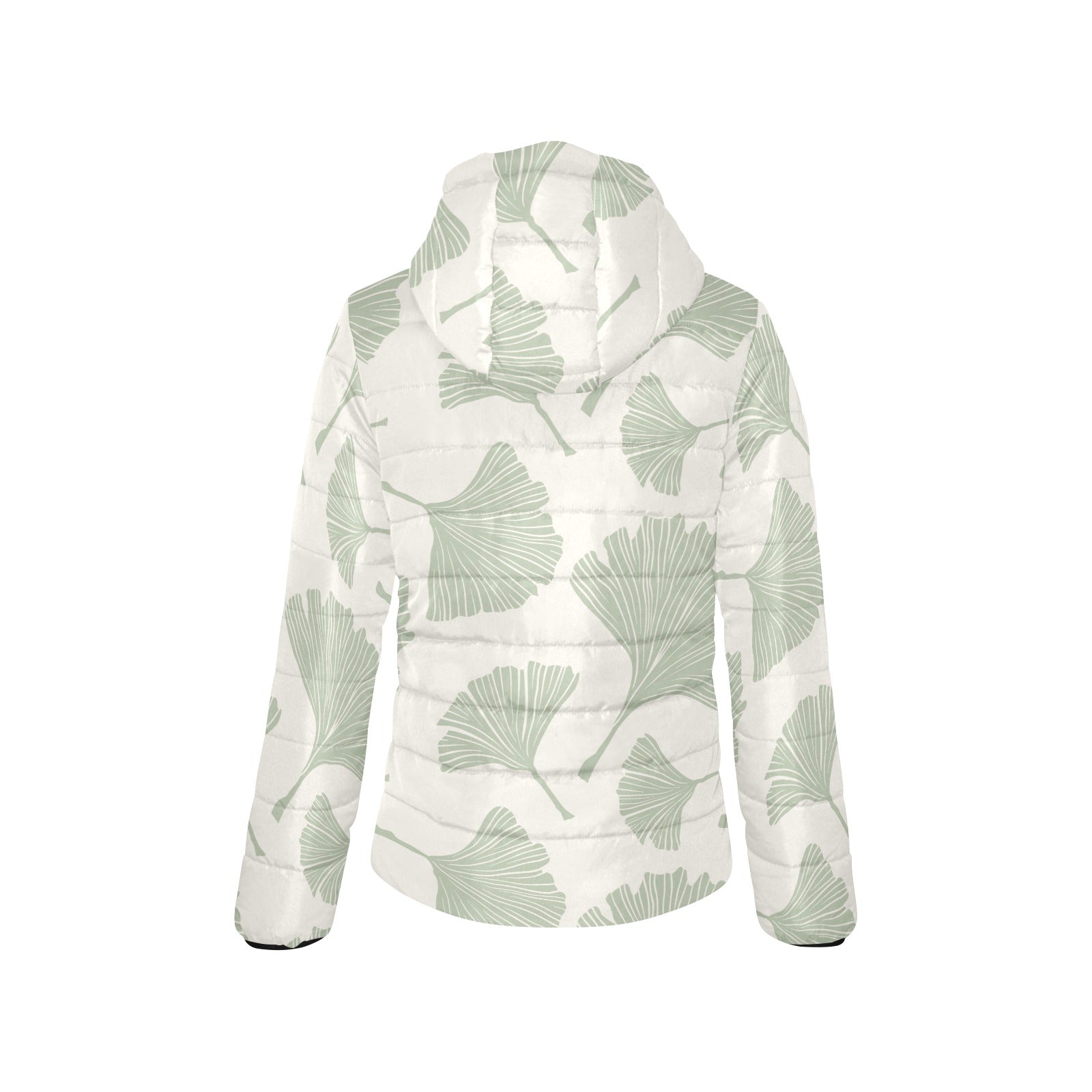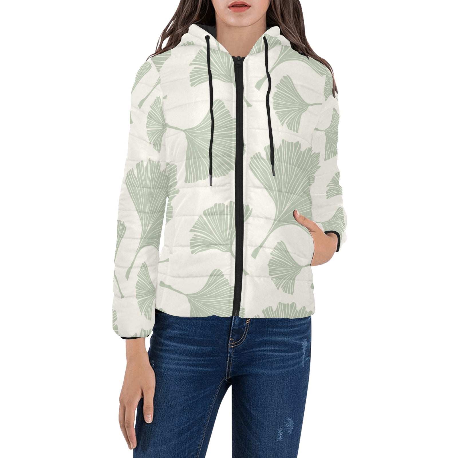 Ginkgo leaves pattern Women's Padded Hooded Jacket