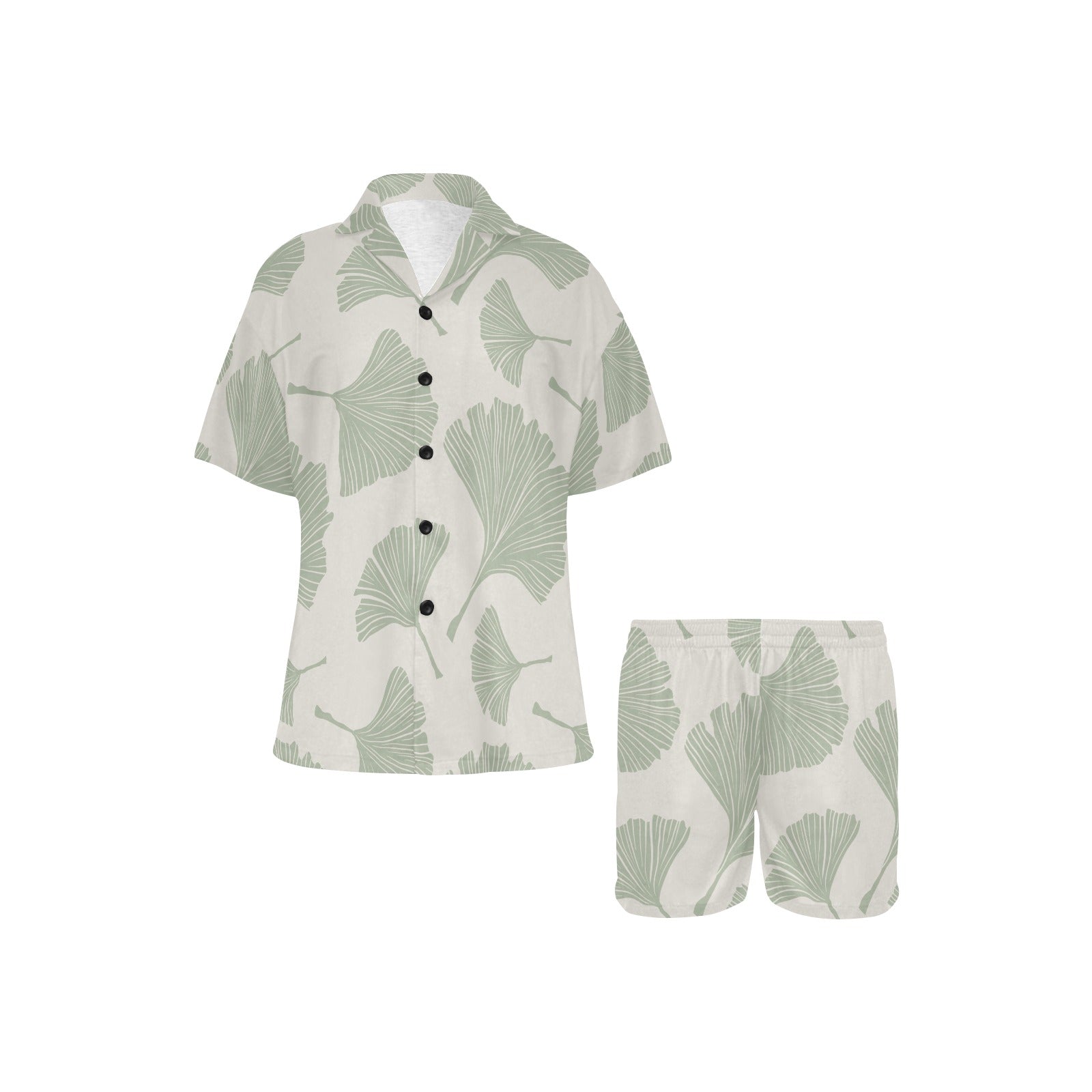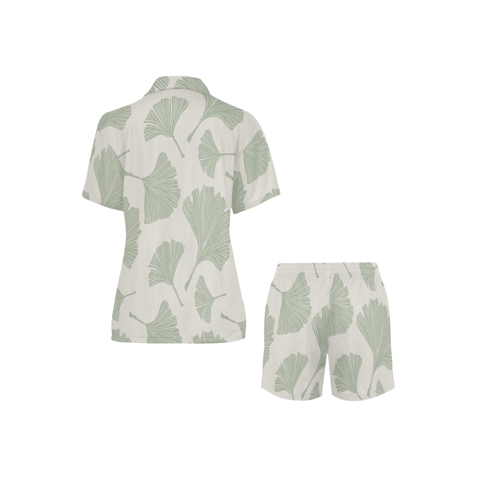 Ginkgo leaves pattern Women's V-Neck Short Pajama Set