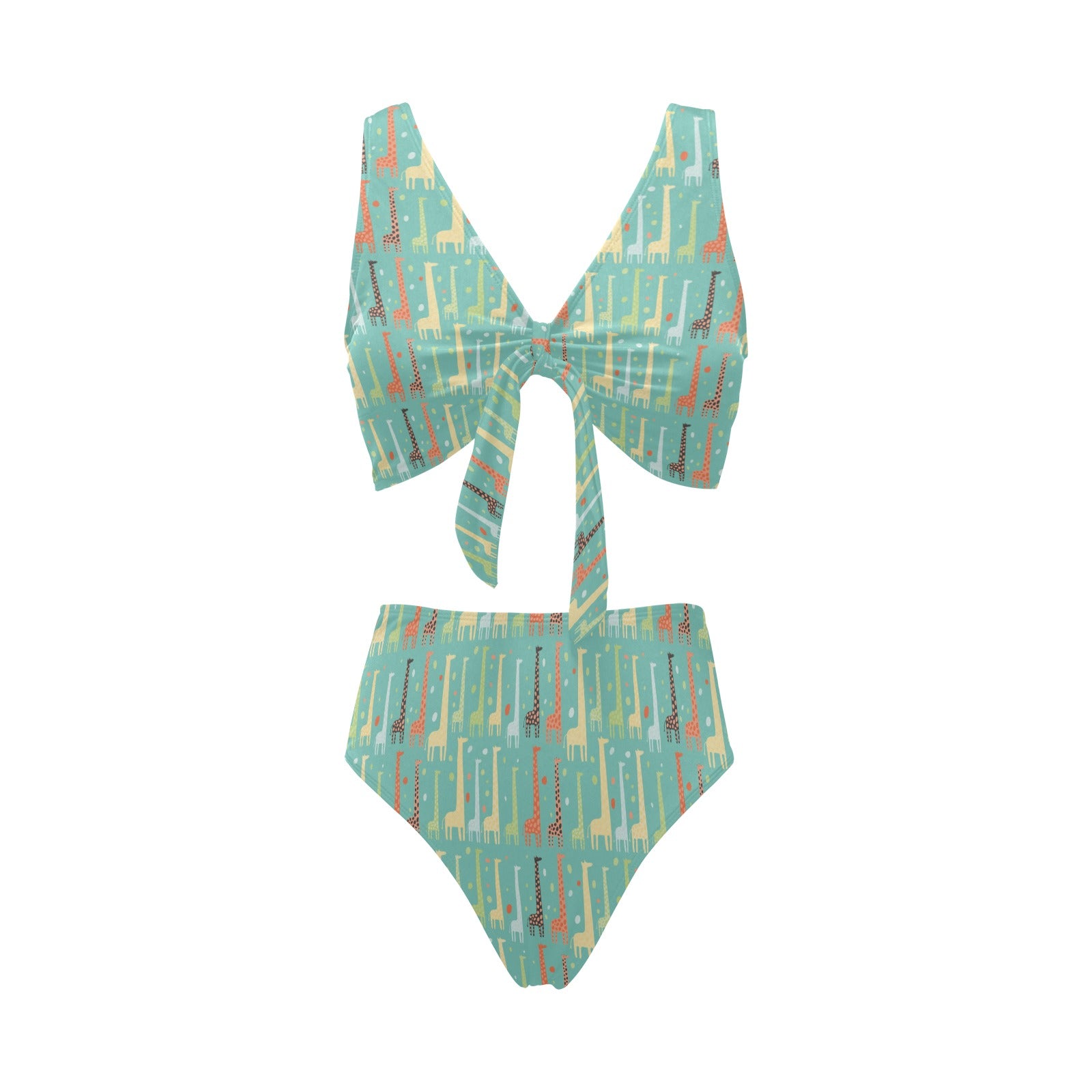 Giraffe Pattern Print Design 01 Chest Bowknot High Waisted Bikini Swimsuit