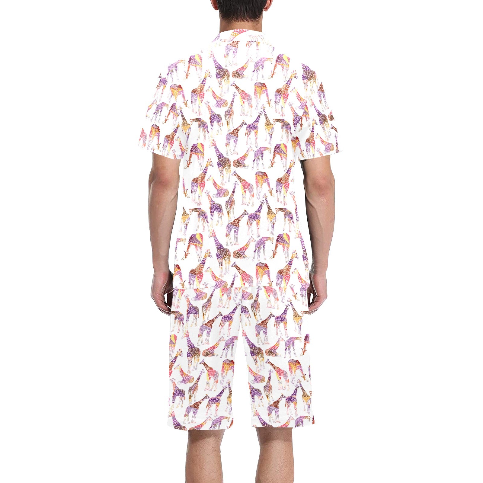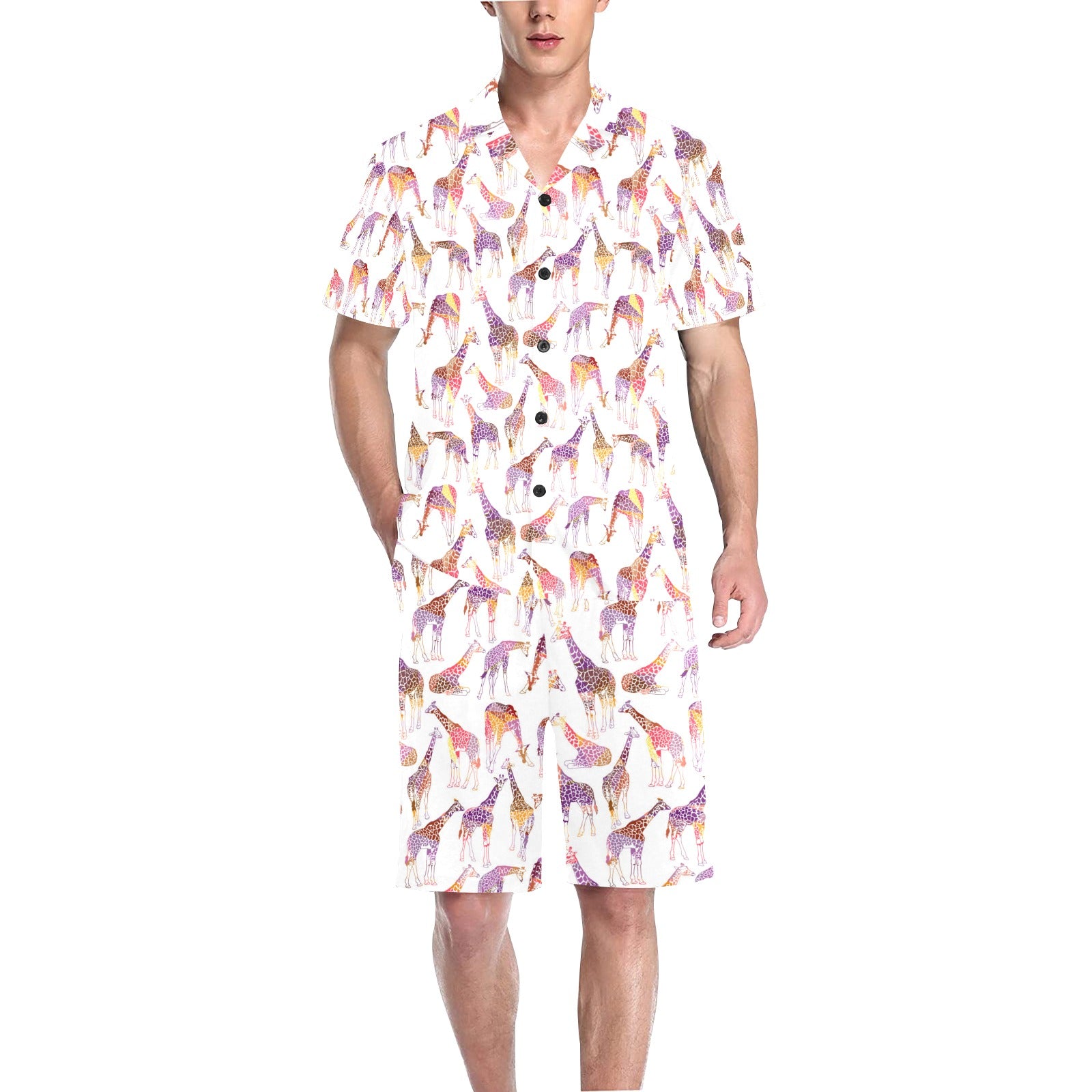 Giraffe Pattern Print Design 02 Men's V-Neck Short Pajama Set