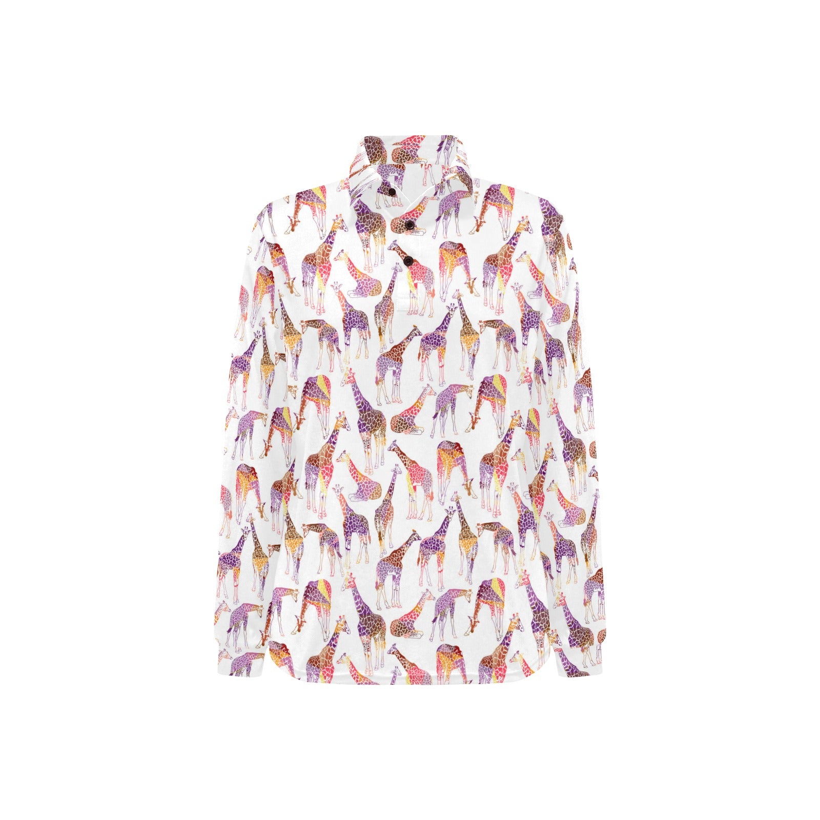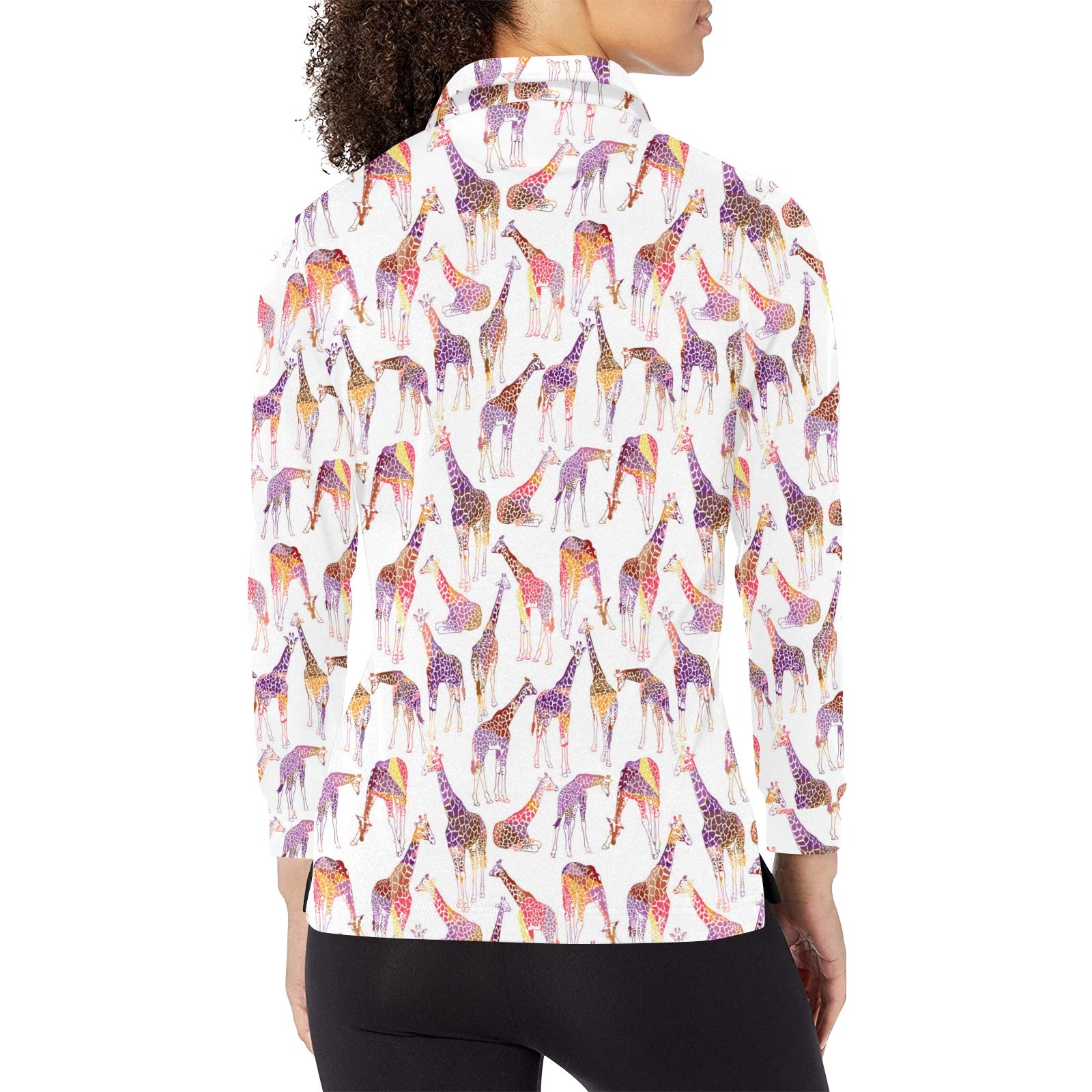 Giraffe Pattern Print Design 02 Women's Long Sleeve Polo Shirt