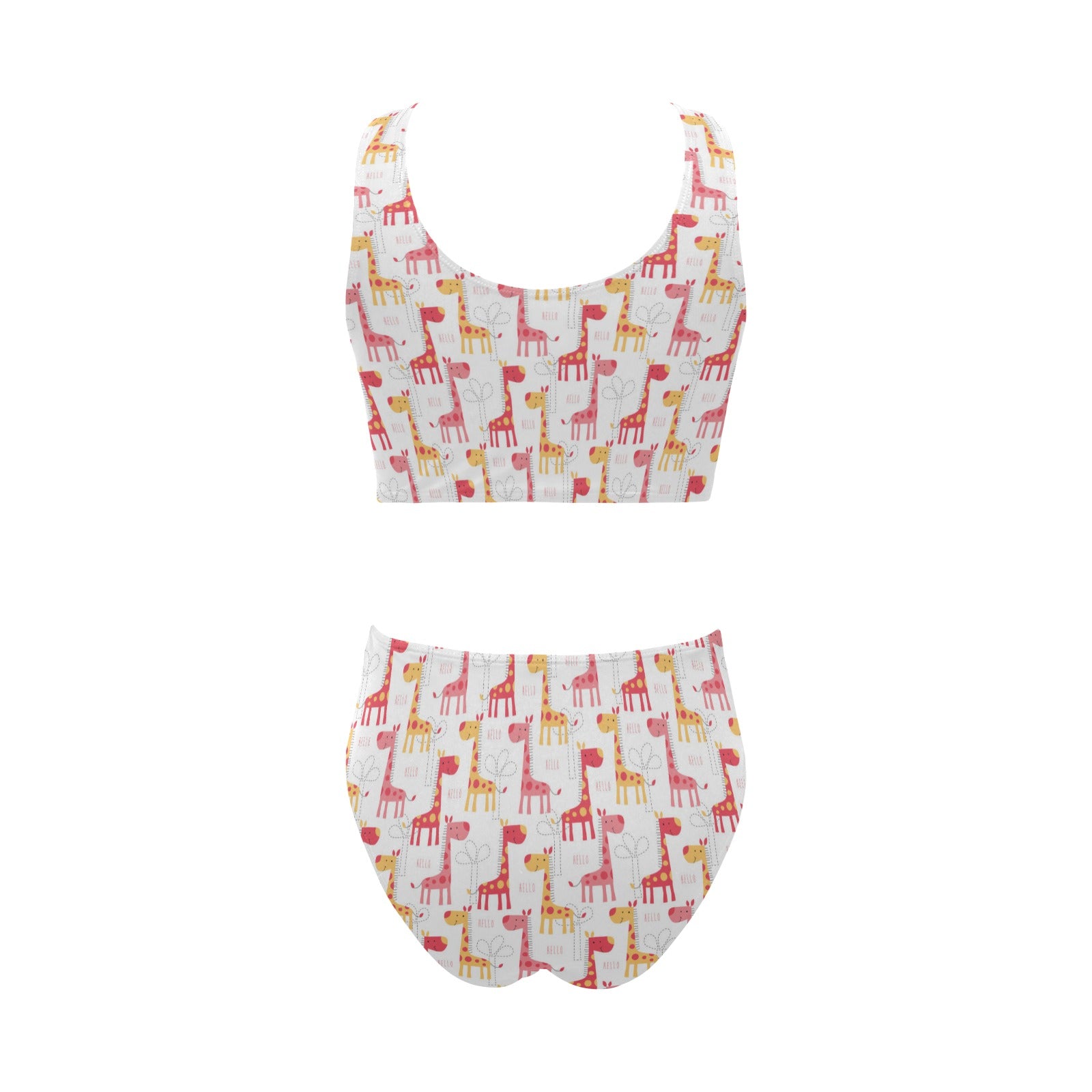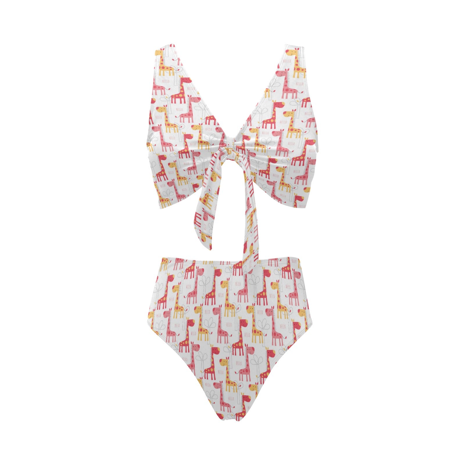 Giraffe Pattern Print Design 03 Chest Bowknot High Waisted Bikini Swimsuit