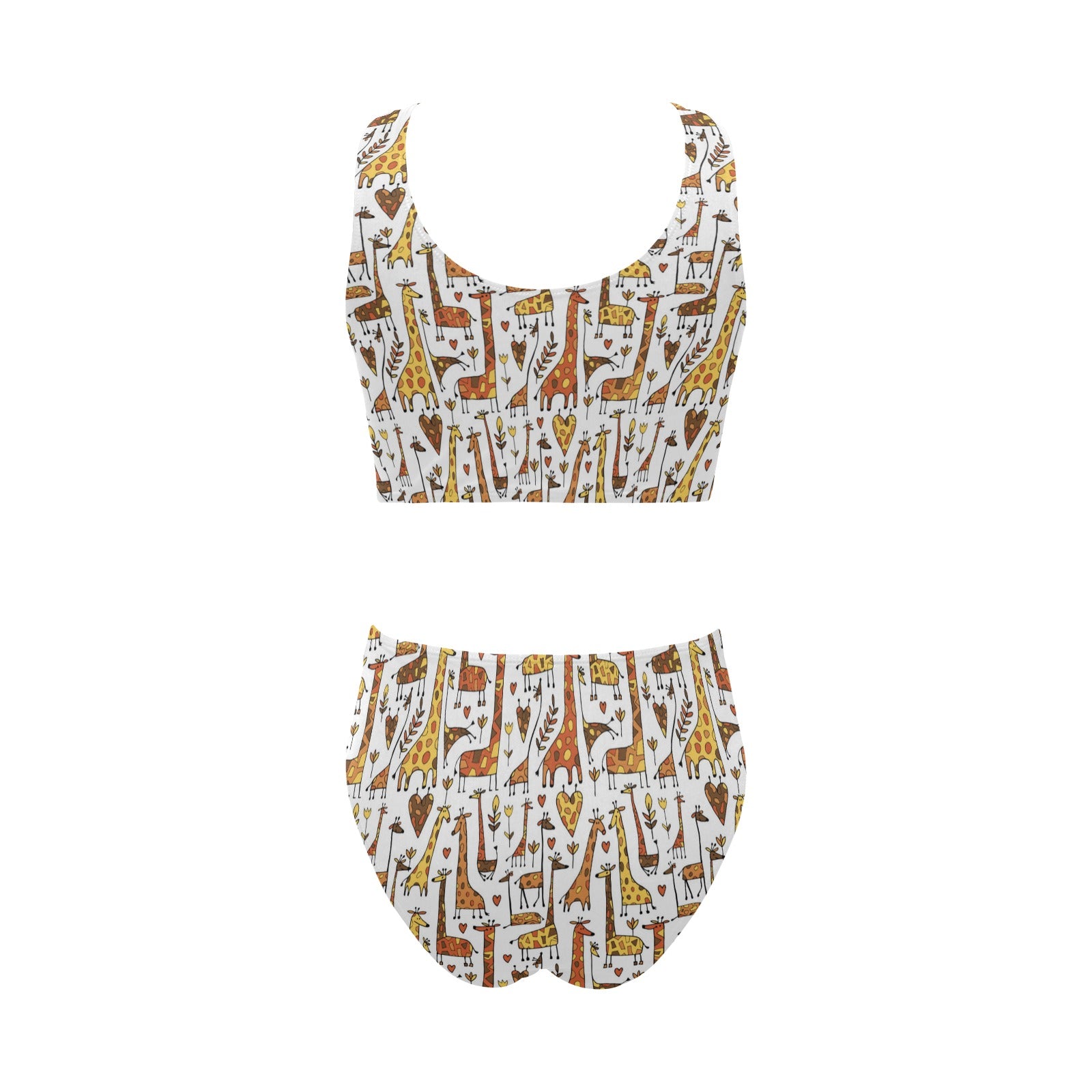 Giraffe Pattern Print Design 04 Chest Bowknot High Waisted Bikini Swimsuit