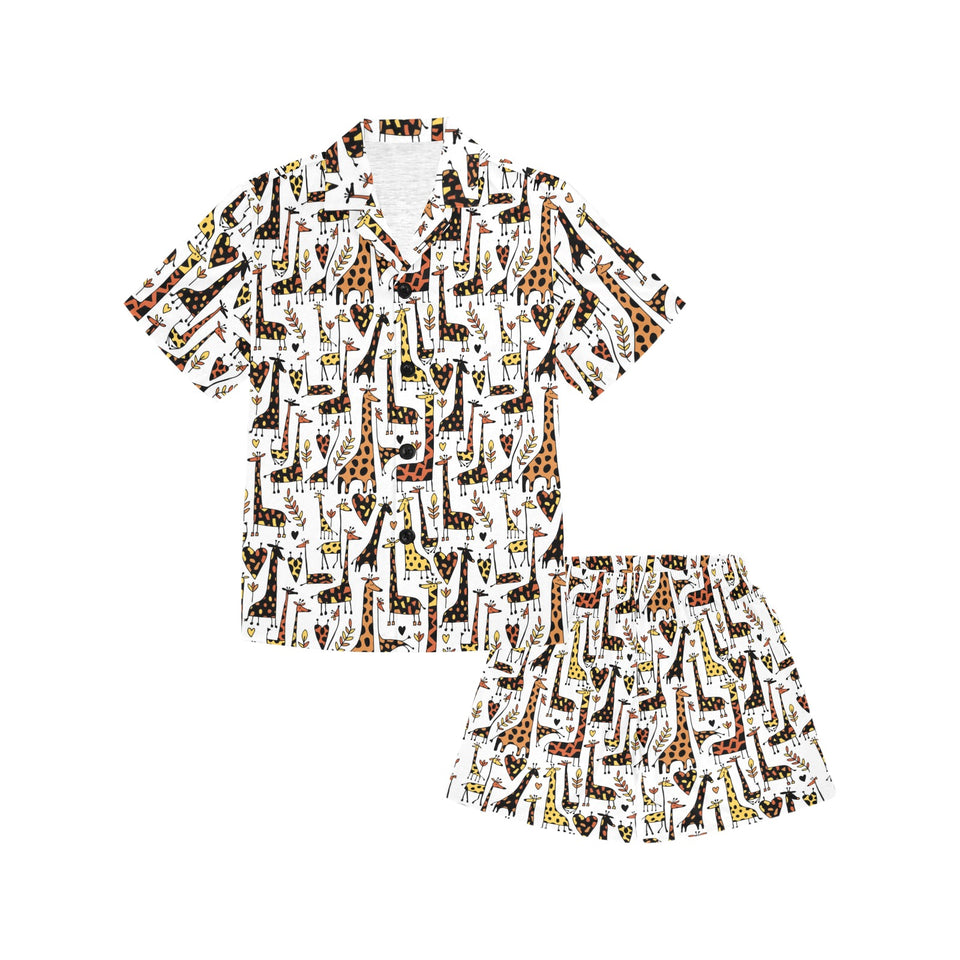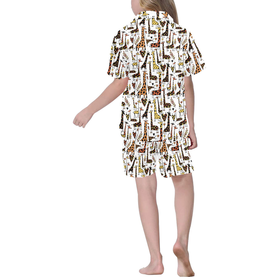 Giraffe Pattern Print Design 05 Kids' Boys' Girls' V-Neck Short Pajama Set