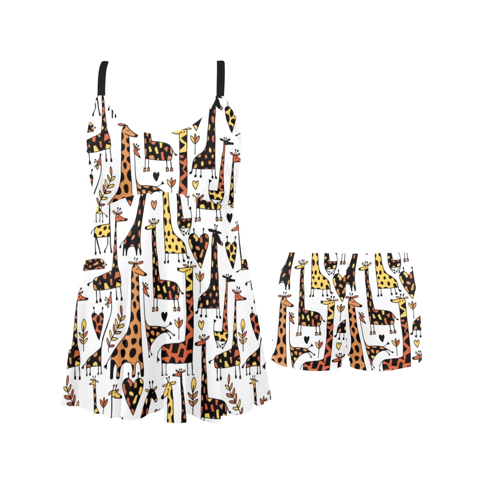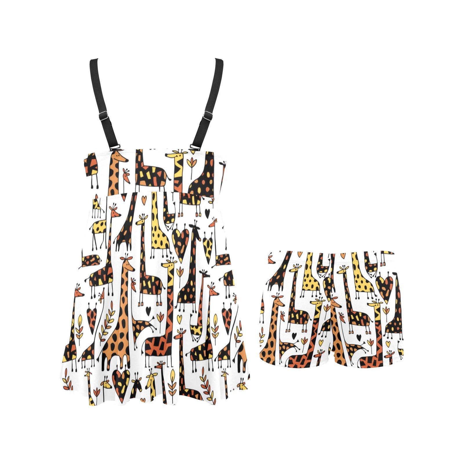 Giraffe Pattern Print Design 05 Chest Sexy Pleated Two Piece Swim Dress