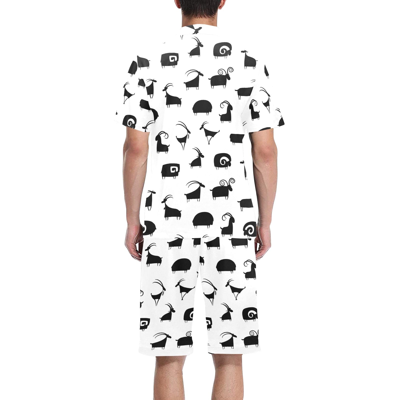 Goat ram pattern Men's V-Neck Short Pajama Set