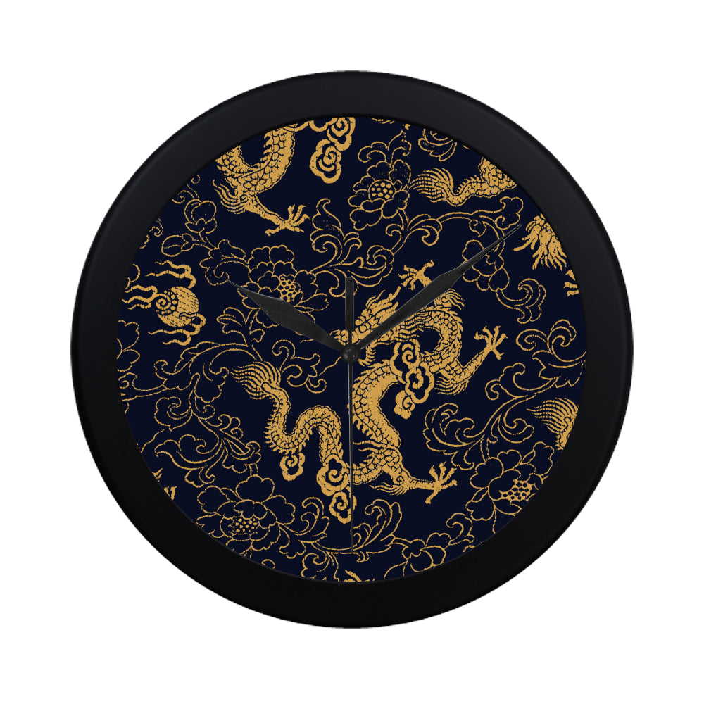 Gold dragon pattern Elegant Black Wall Clock is a uniqued design and limited item. It made to order, hand printed, and sewn with love in our factory.