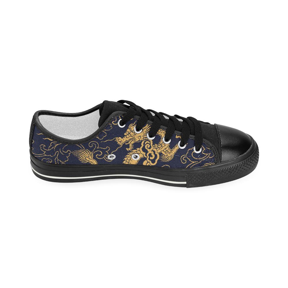 Gold dragon pattern Kids' Boys' Girls' Low Top Canvas Shoes Black