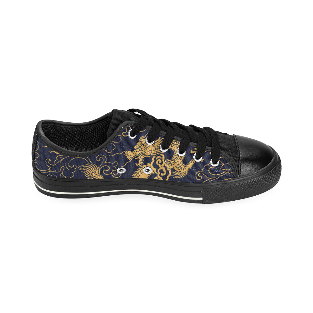 Gold dragon pattern Men's Low Top Canvas Shoes Black