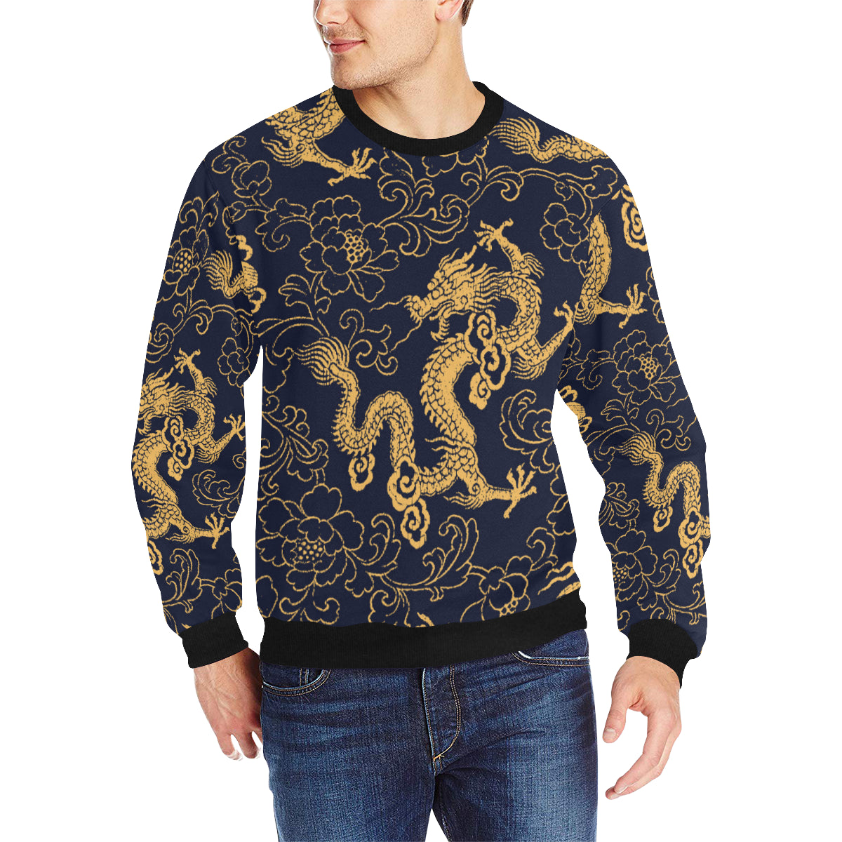 Gold dragon pattern Men's Crew Neck Sweatshirt is a uniqued design and limited item. It made to order, hand printed, and sewn with love in our factory.