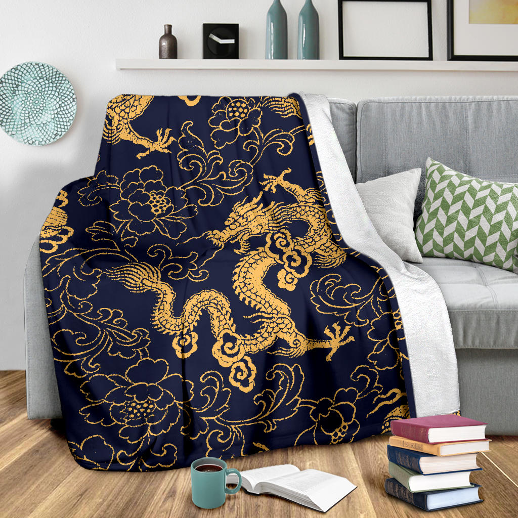 Gold dragon pattern Premium Blanket is a uniqued design and limited item. It made to order, hand printed, and sewn with love in our factory.