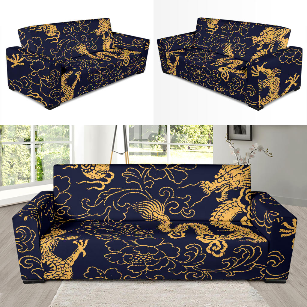 Gold dragon pattern Sofa Slipcover is a uniqued design and limited item. It made to order, hand printed, and sewn with love in our factory.