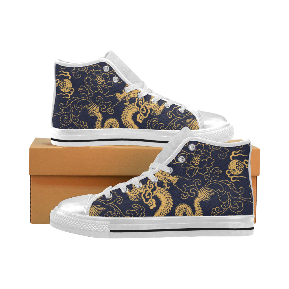 Gold dragon pattern Women's High Top Canvas Shoes White