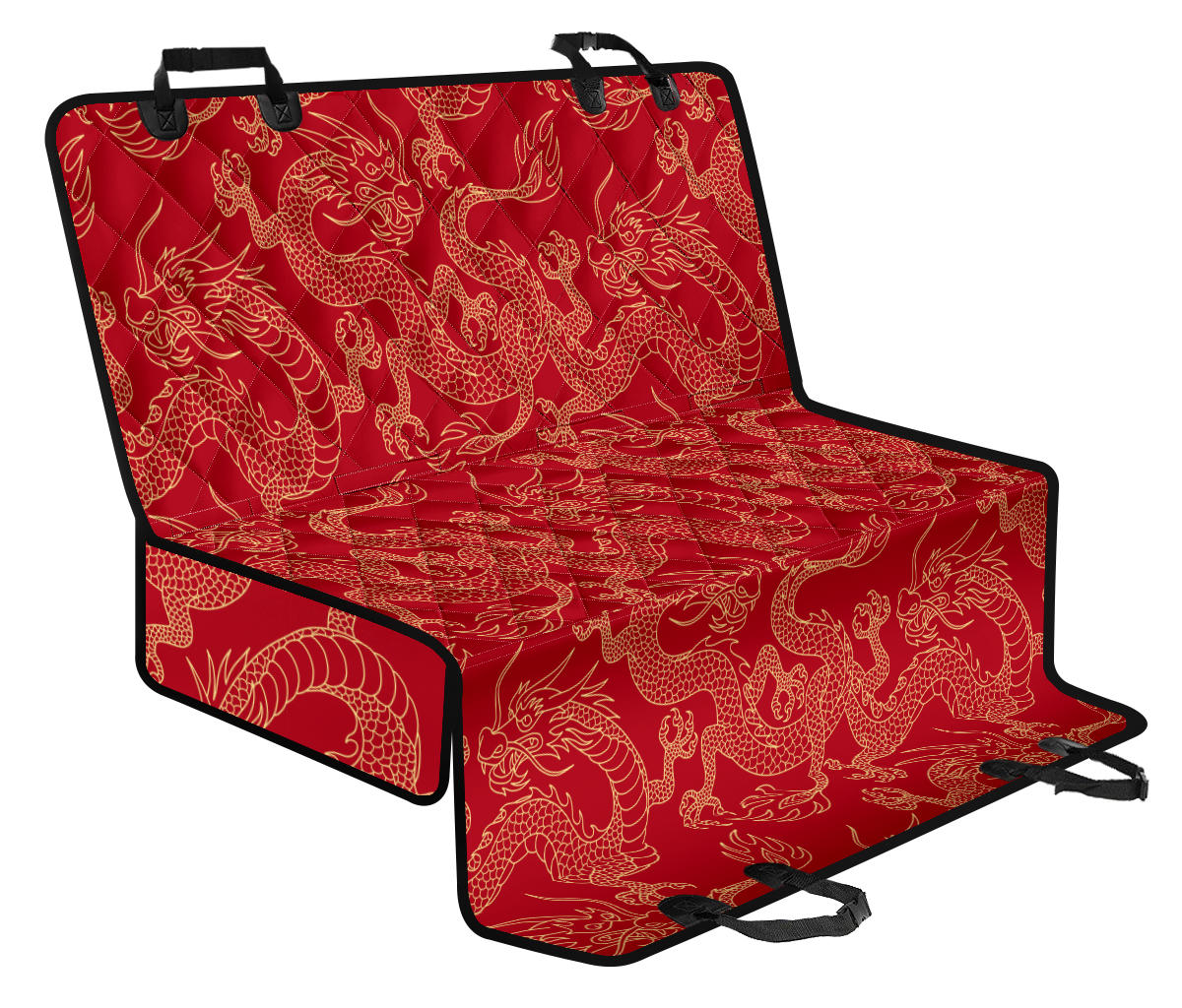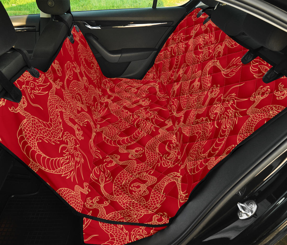 Gold dragons red background Dog Car Seat Covers is a uniqued design and limited item. It made to order, hand printed, and sewn with love in our factory.