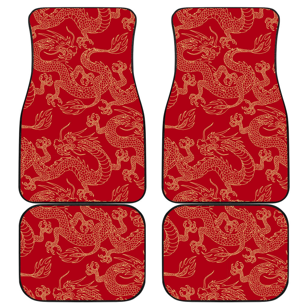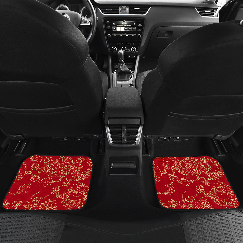 Gold Dragons Red Background Front And Back Car Mats