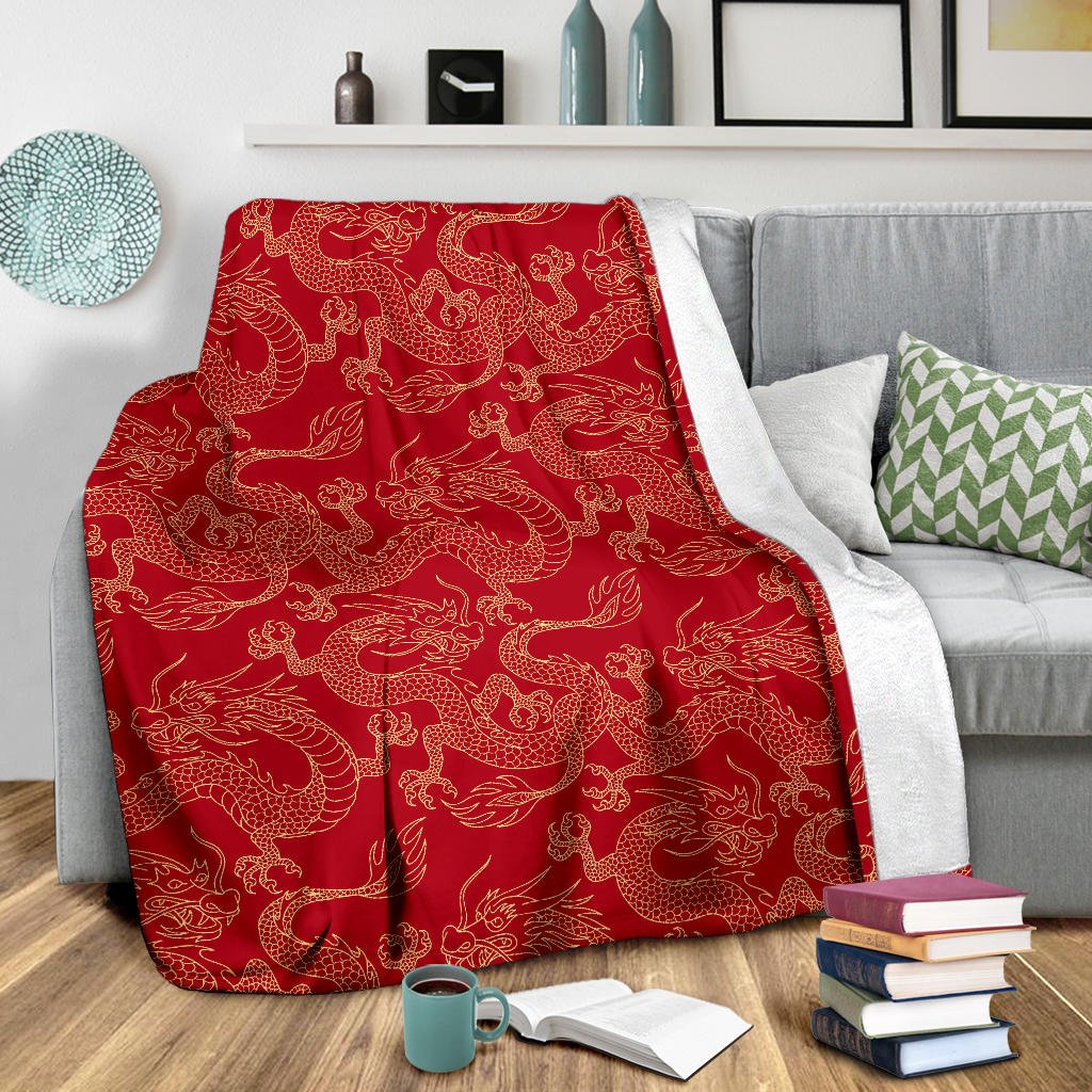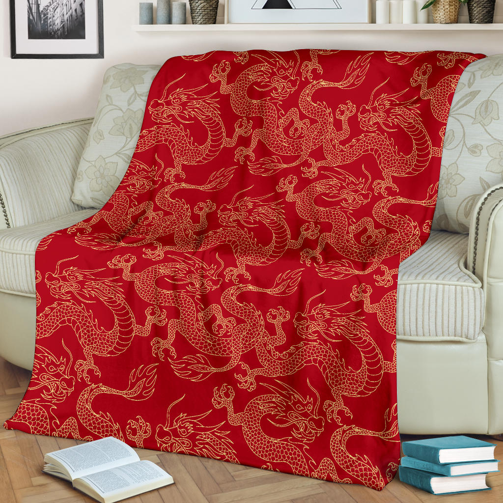 Gold dragons red background Premium Blanket is a uniqued design and limited item. It made to order, hand printed, and sewn with love in our factory.