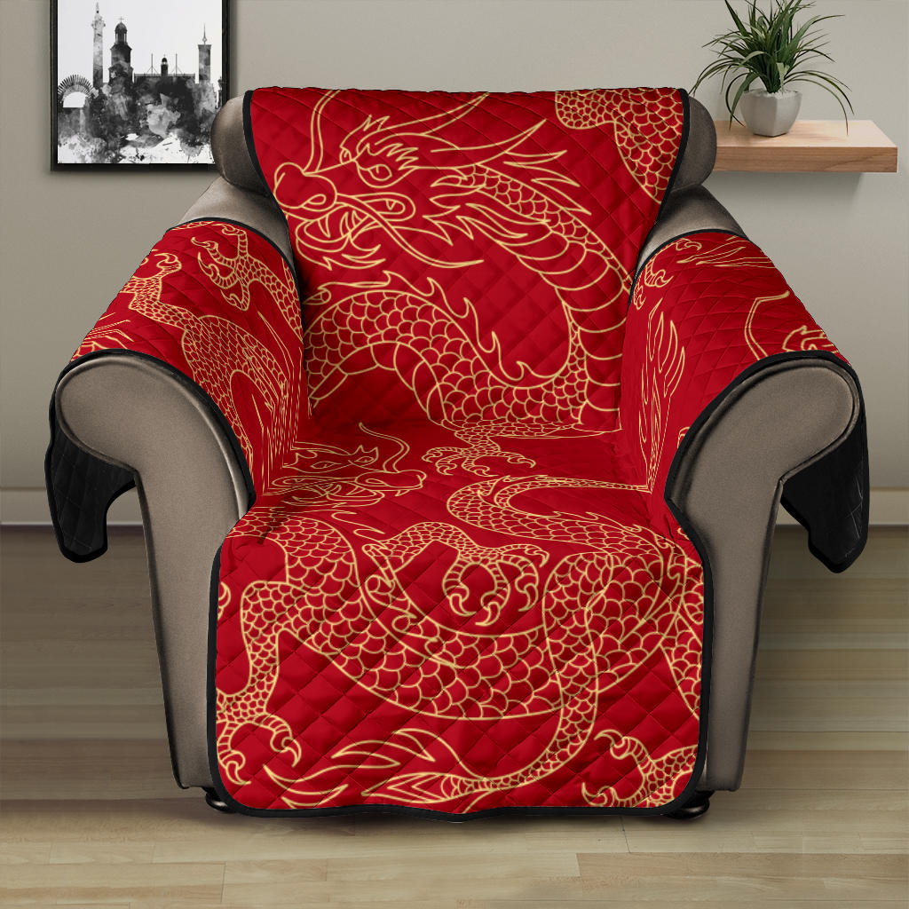 Gold dragons red background Recliner Cover Protector
