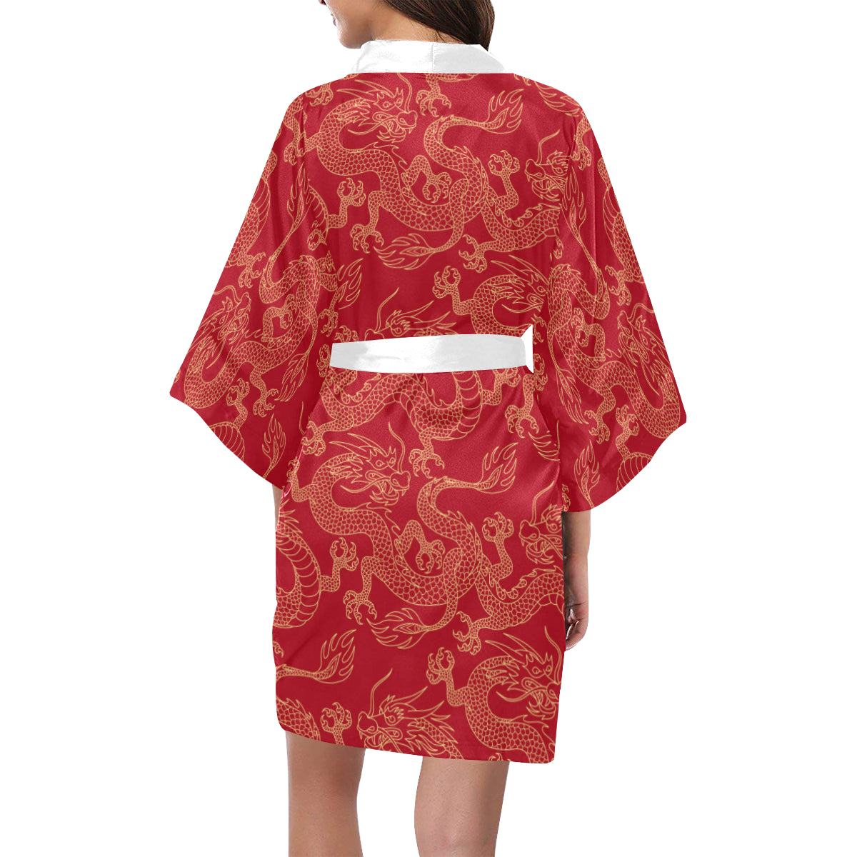 Gold dragons red background Women's Short Kimono Robe is a uniqued design and limited item. It made to order, hand printed, and sewn with love in our factory.