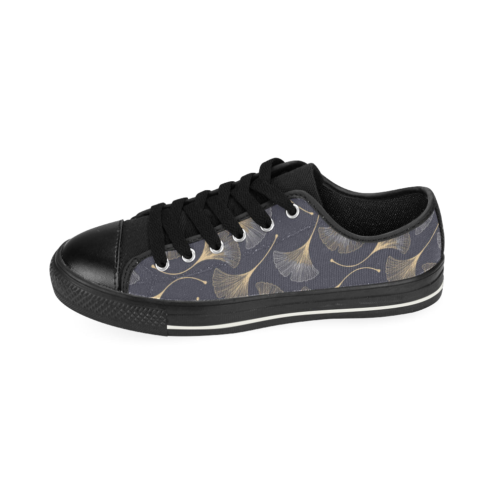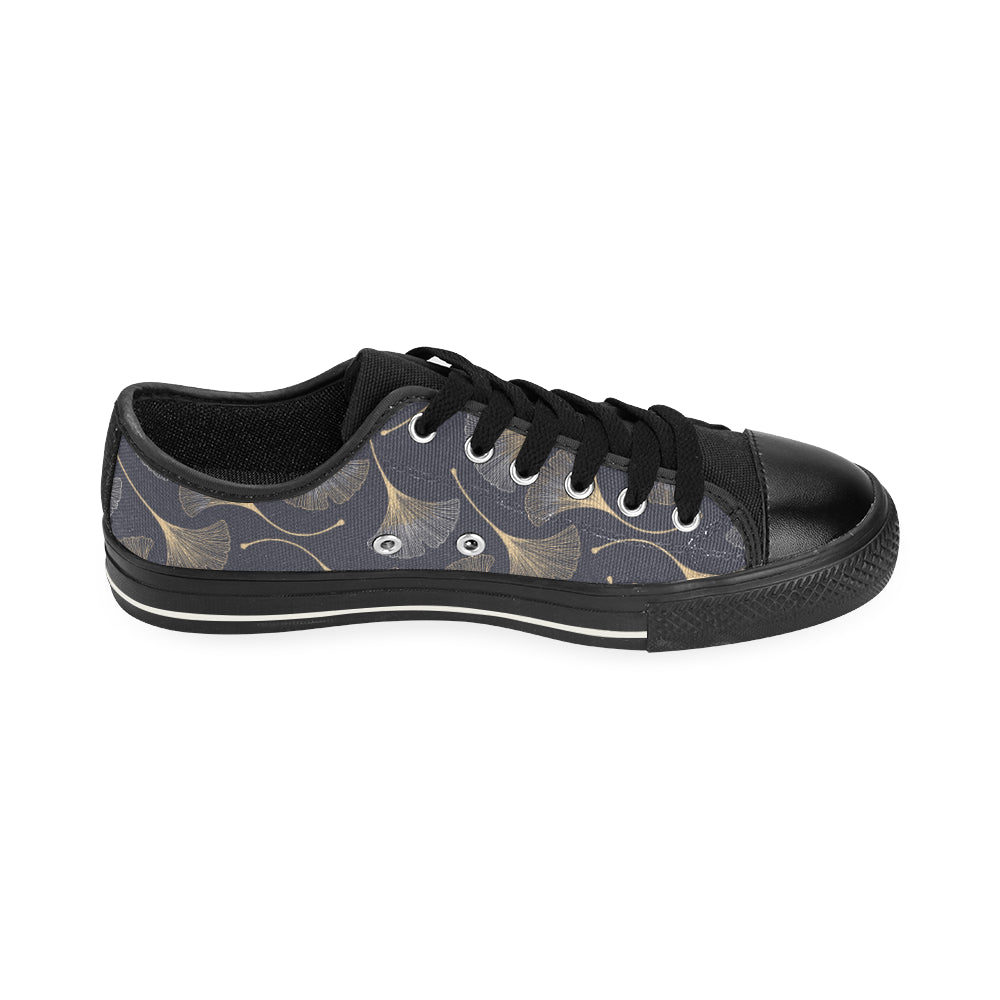 Gold ginkgo leaves Men's Low Top Canvas Shoes Black
