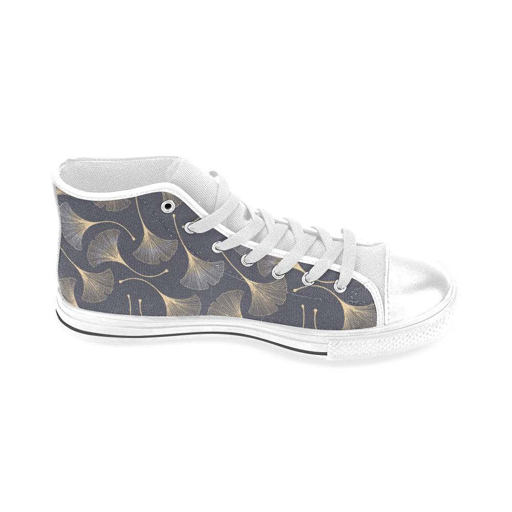 Gold ginkgo leaves Men's High Top Canvas Shoes White