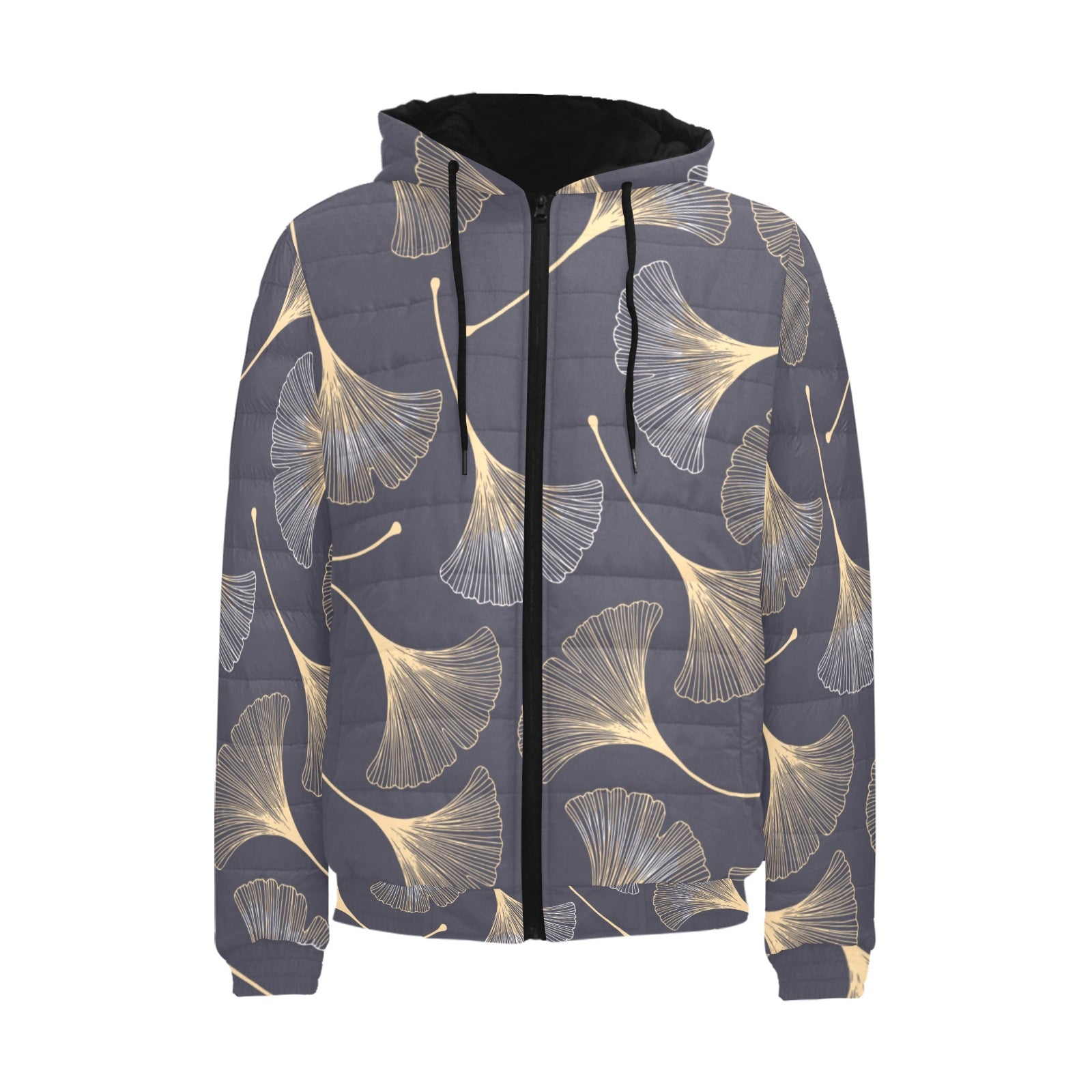 Gold ginkgo leaves Men's Padded Hooded Jacket