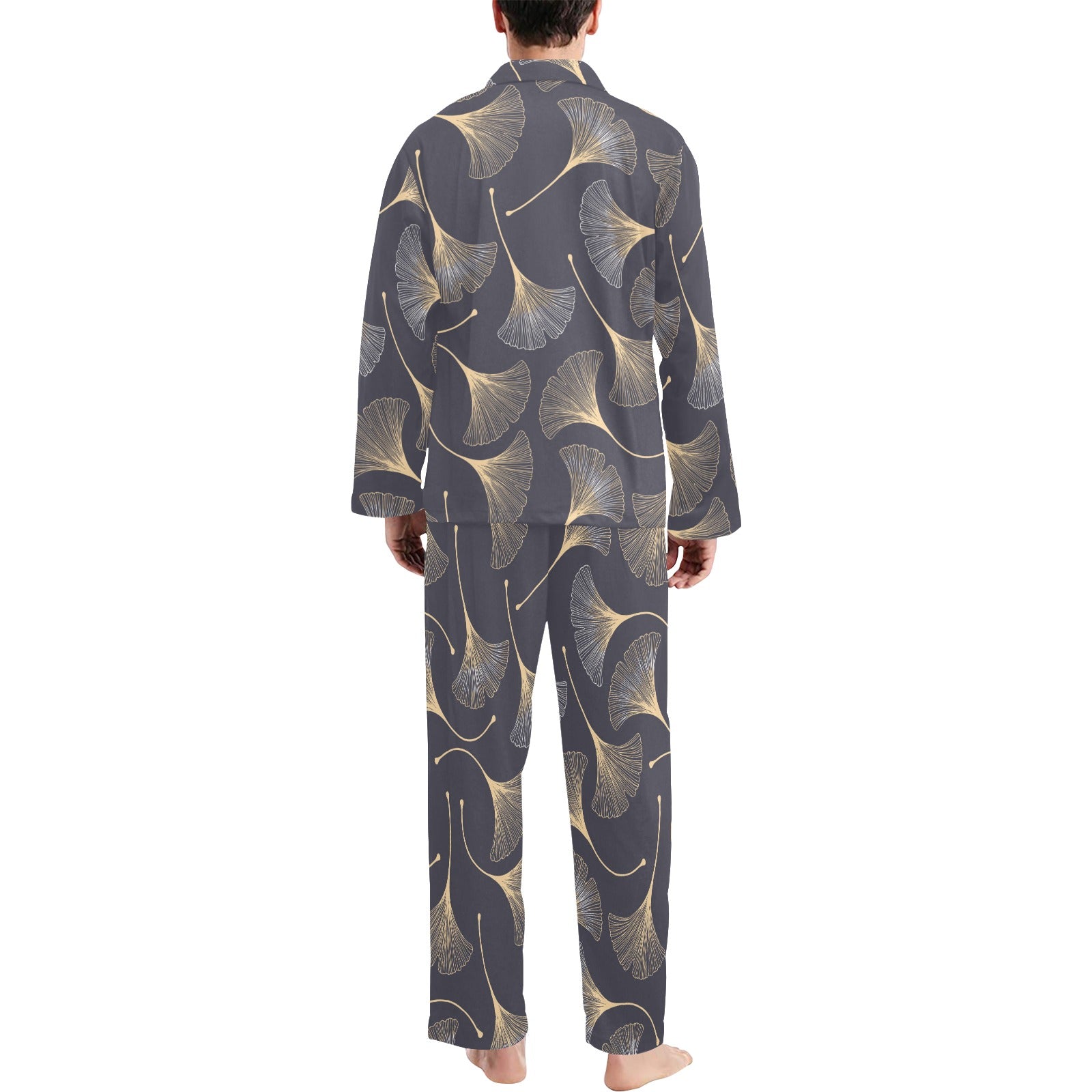 Gold ginkgo leaves Men's Long Pajama Set