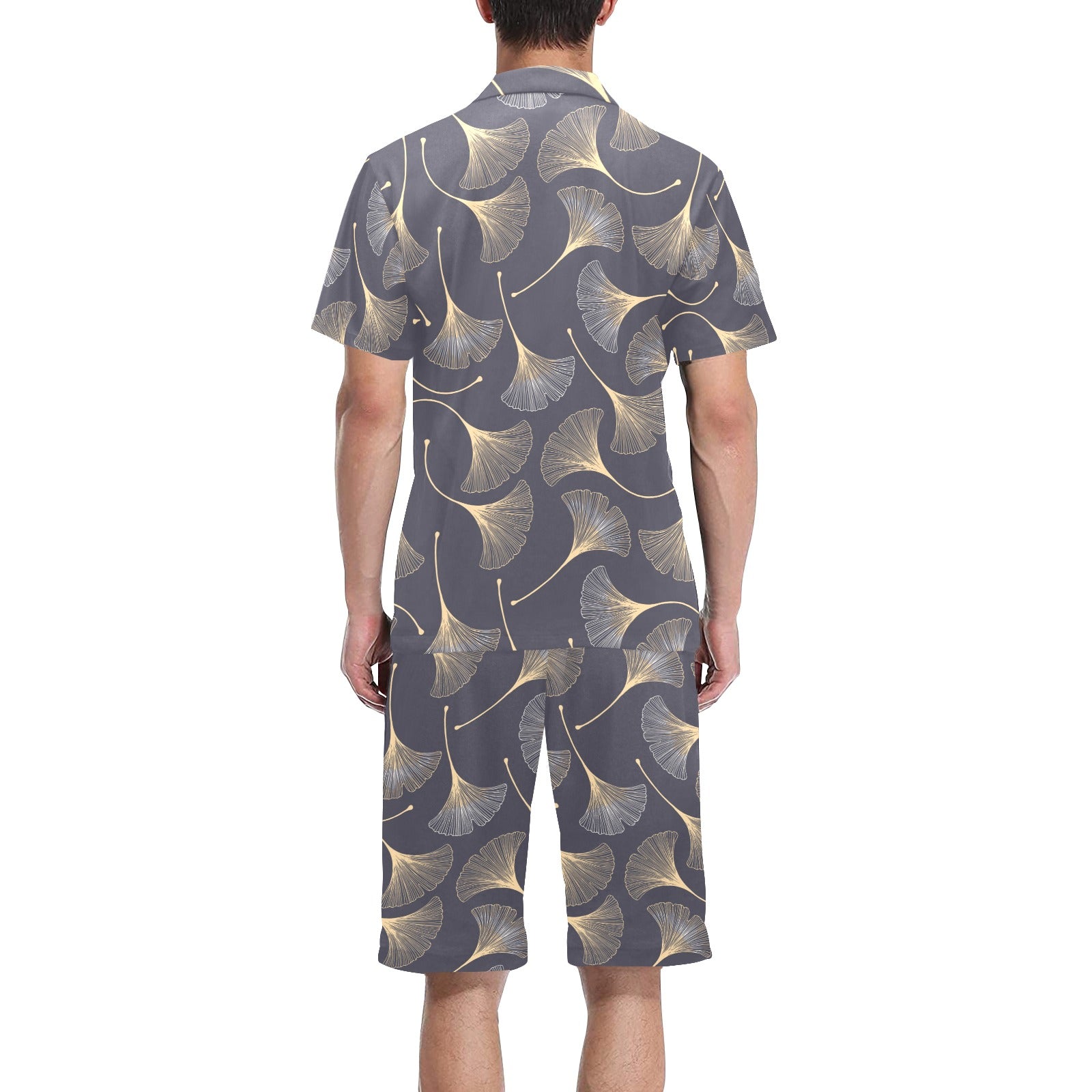 Gold ginkgo leaves Men's V-Neck Short Pajama Set