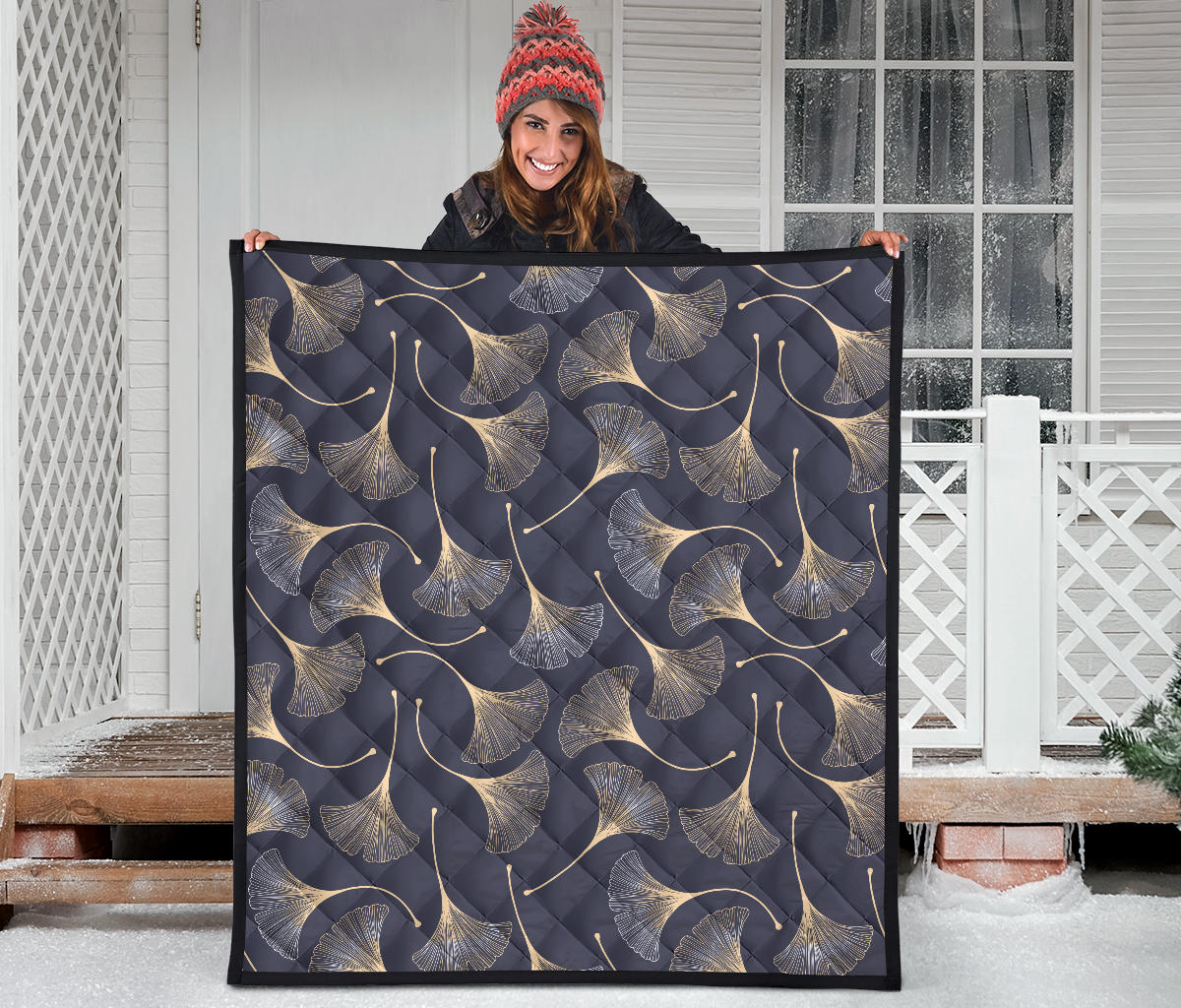 Gold Ginkgo Leaves Premium Quilt is a uniqued design and limited item. It made to order, hand printed, and sewn with love in our factory.