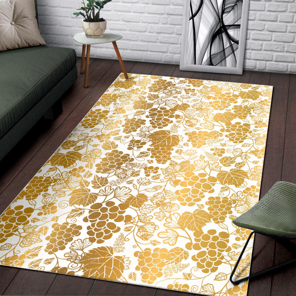 Gold grape pattern Area Rug is a uniqued design and limited item. It made to order, hand printed, and sewn with love in our factory.