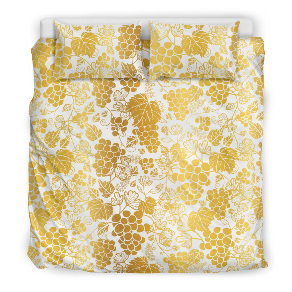 Gold grape pattern Bedding Set is a uniqued design and limited item. It made to order, hand printed, and sewn with love in our factory.