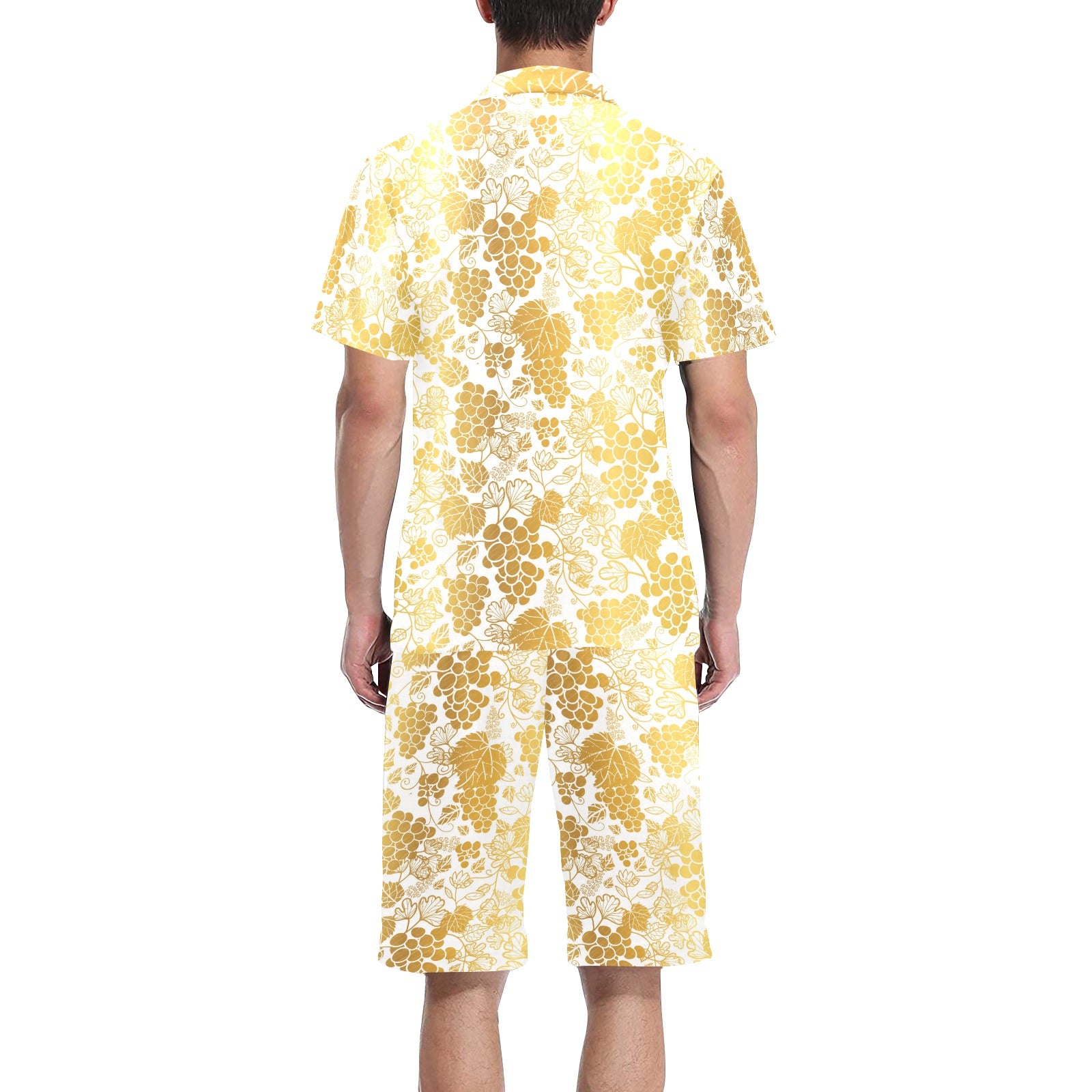 Gold grape pattern Men's V-Neck Short Pajama Set
