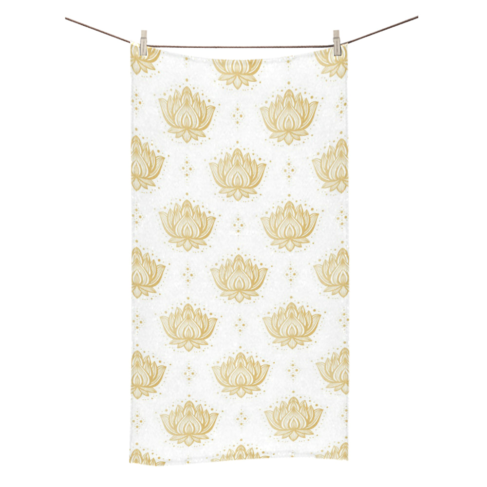 Gold Ornamental lotue waterlily symbol pattern Bath Towel 30"x56" is a uniqued design and limited item. It made to order, hand printed, and sewn with love in our factory.