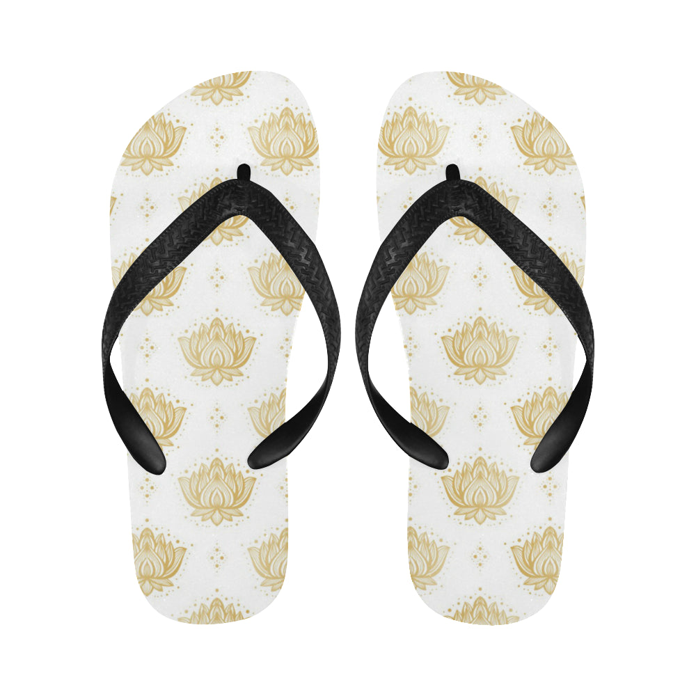 Gold Ornamental lotue waterlily symbol pattern Unisex Flip Flops
