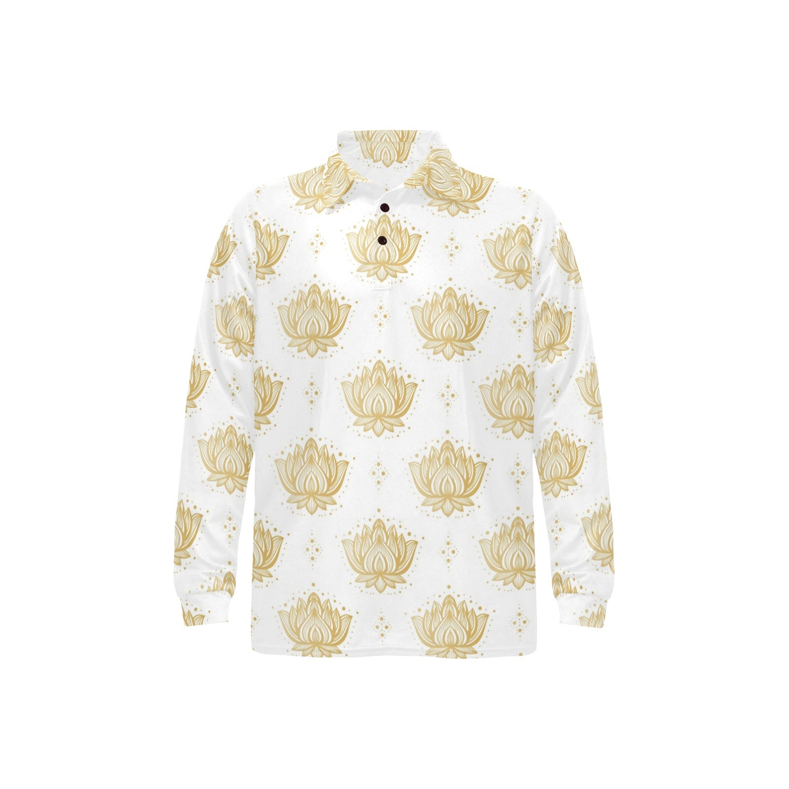 Gold Ornamental lotue waterlily symbol pattern Men's Long Sleeve Polo Shirt