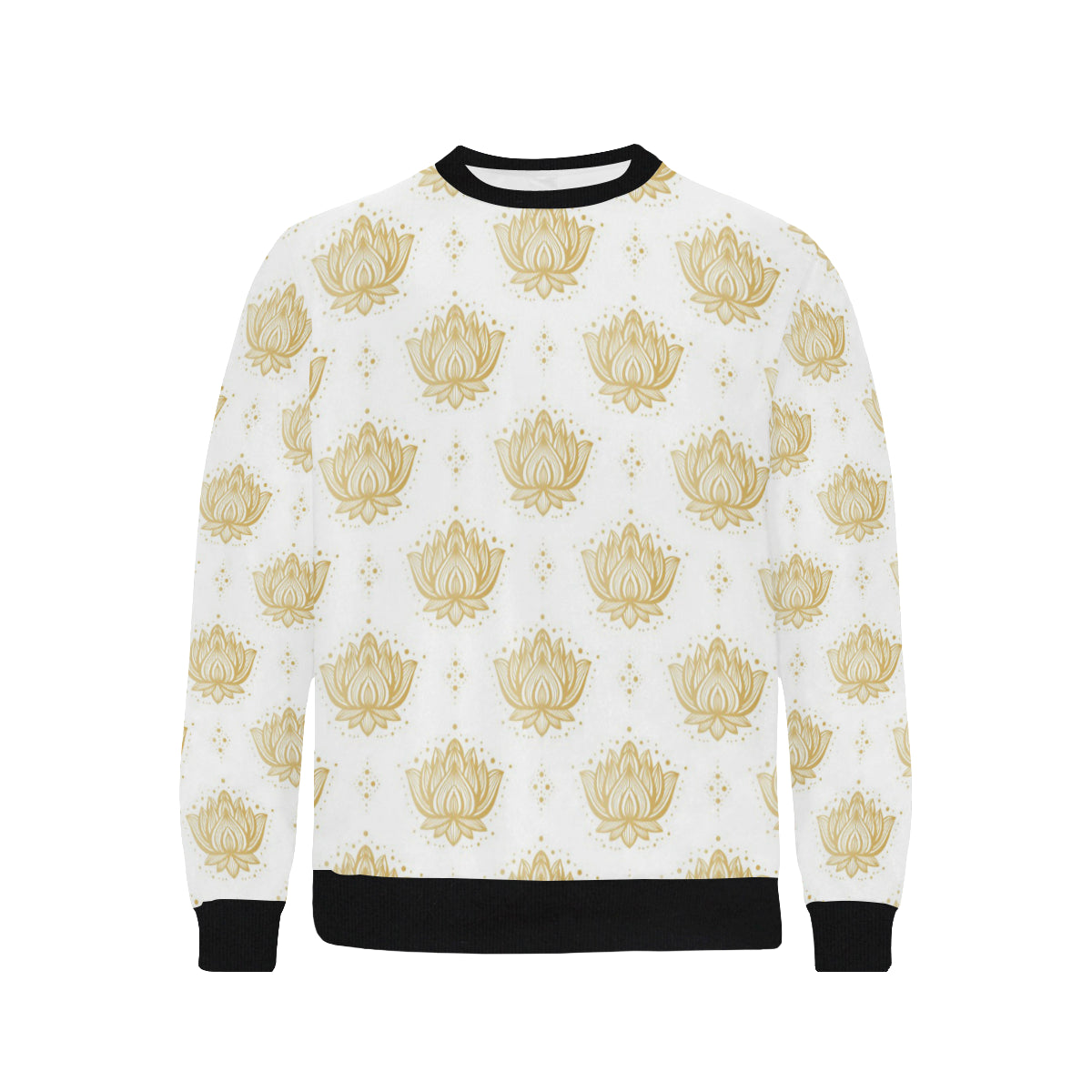 Gold Ornamental lotue waterlily symbol pattern Men's Crew Neck Sweatshirt is a uniqued design and limited item. It made to order, hand printed, and sewn with love in our factory.