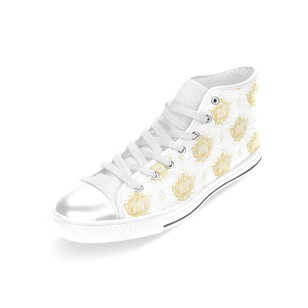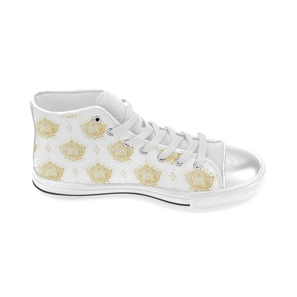 Gold Ornamental lotue waterlily symbol pattern Women's High Top Canvas Shoes White