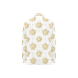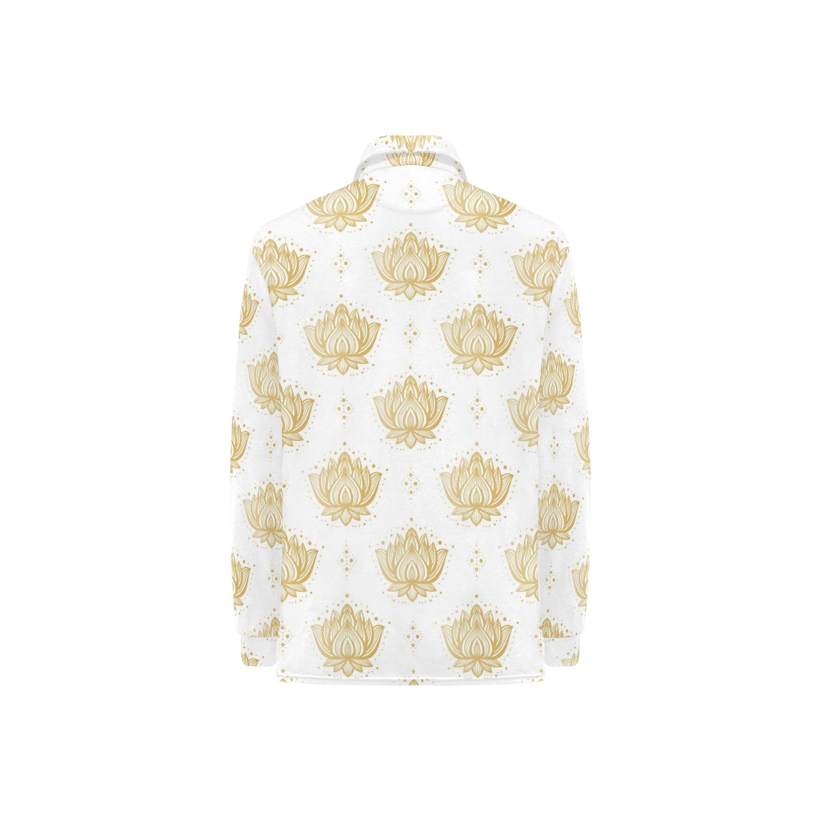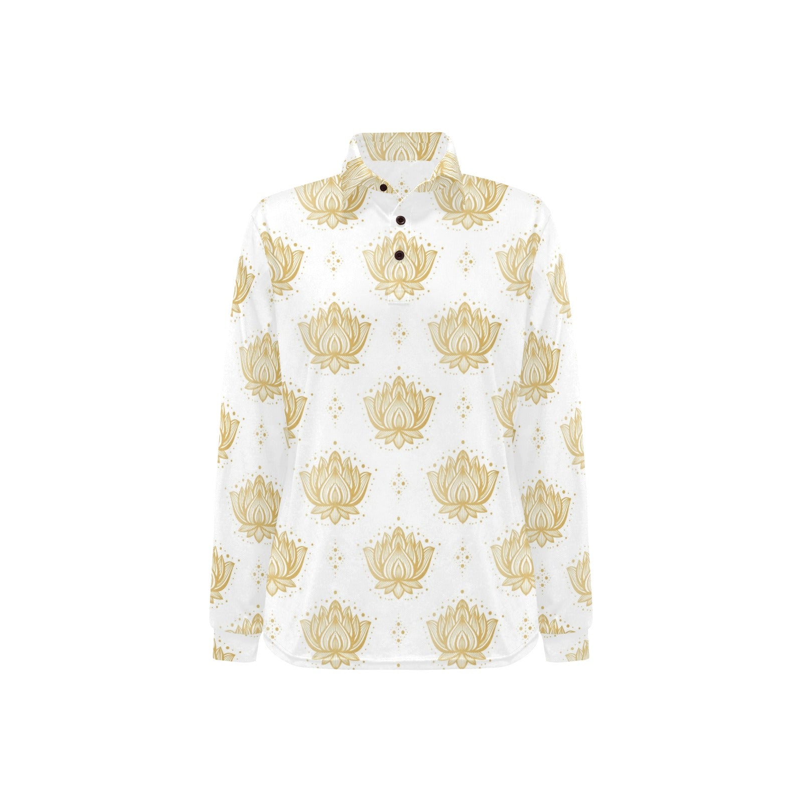 Gold Ornamental lotue waterlily symbol pattern Women's Long Sleeve Polo Shirt